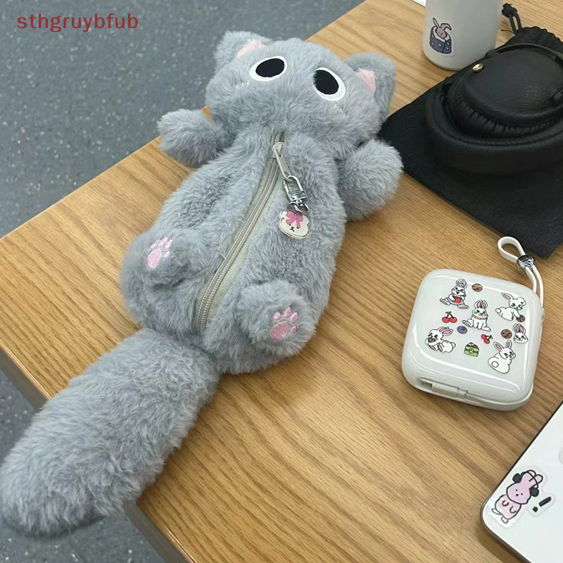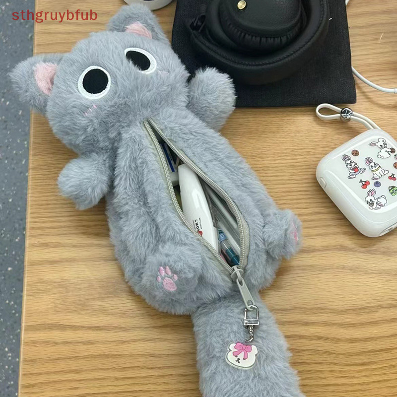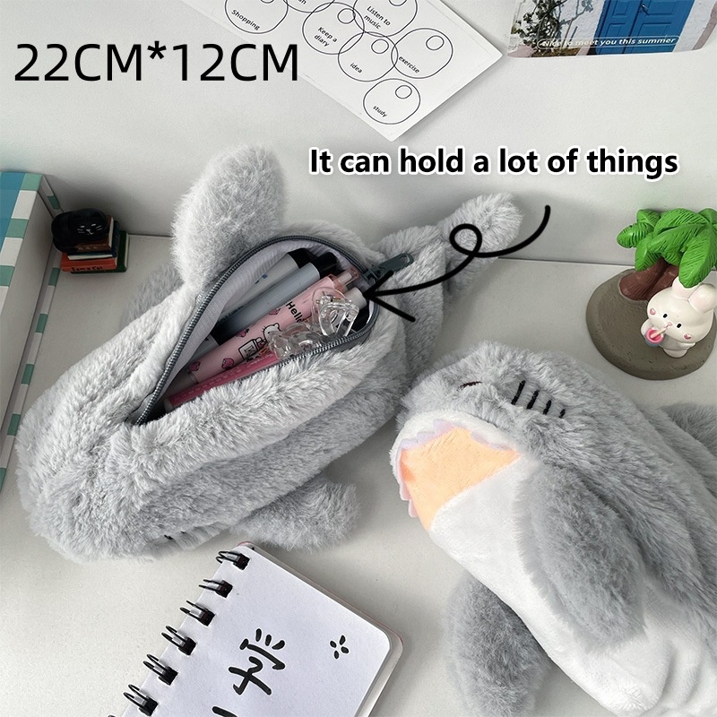 STHB กระเป๋าปากกาตุ๊กตาสีเทาน่ารักเดสก์ท็อปการ์ตูนเครื่องเขียนกระเป๋าเก็บกระเป๋าดินสอกล่องดินสอ TH