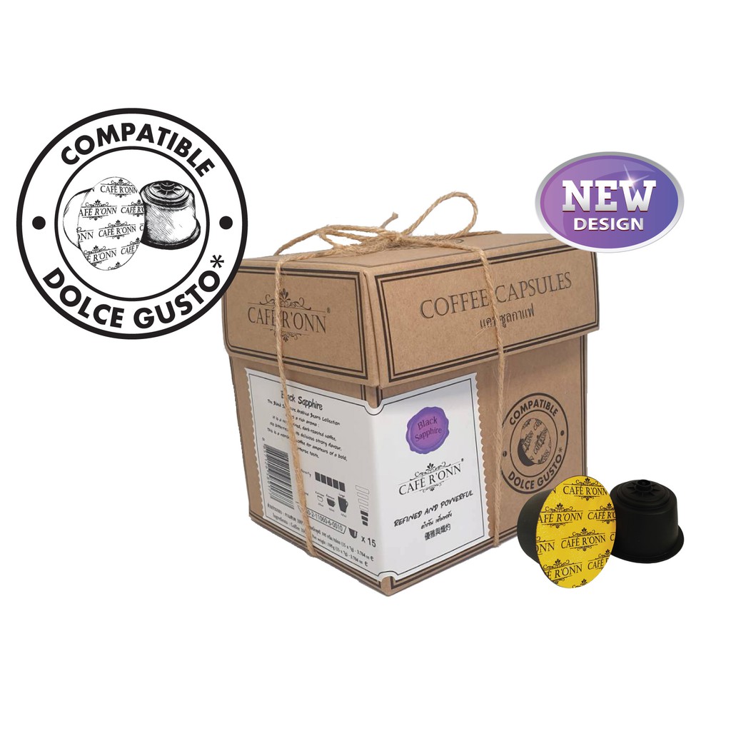 แคปซูลกาแฟ CAFE R'ONN อาราบิก้า100% คั่วดำ 15 แคปซูล/กล่อง สามารถใช้ร่วมกับเครื่อง DOLCE GUSTO * ได้