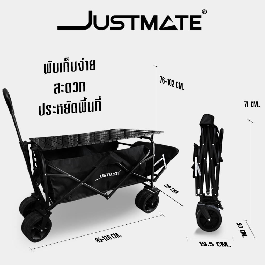 [JUSTMATE] รถเข็นแคมป์ปิ้ง OUTDOOR รถเข็นแข็งแรง รถเข็นพับได้ รับน้ำหนักได้ 150KG ความจุ 87L
