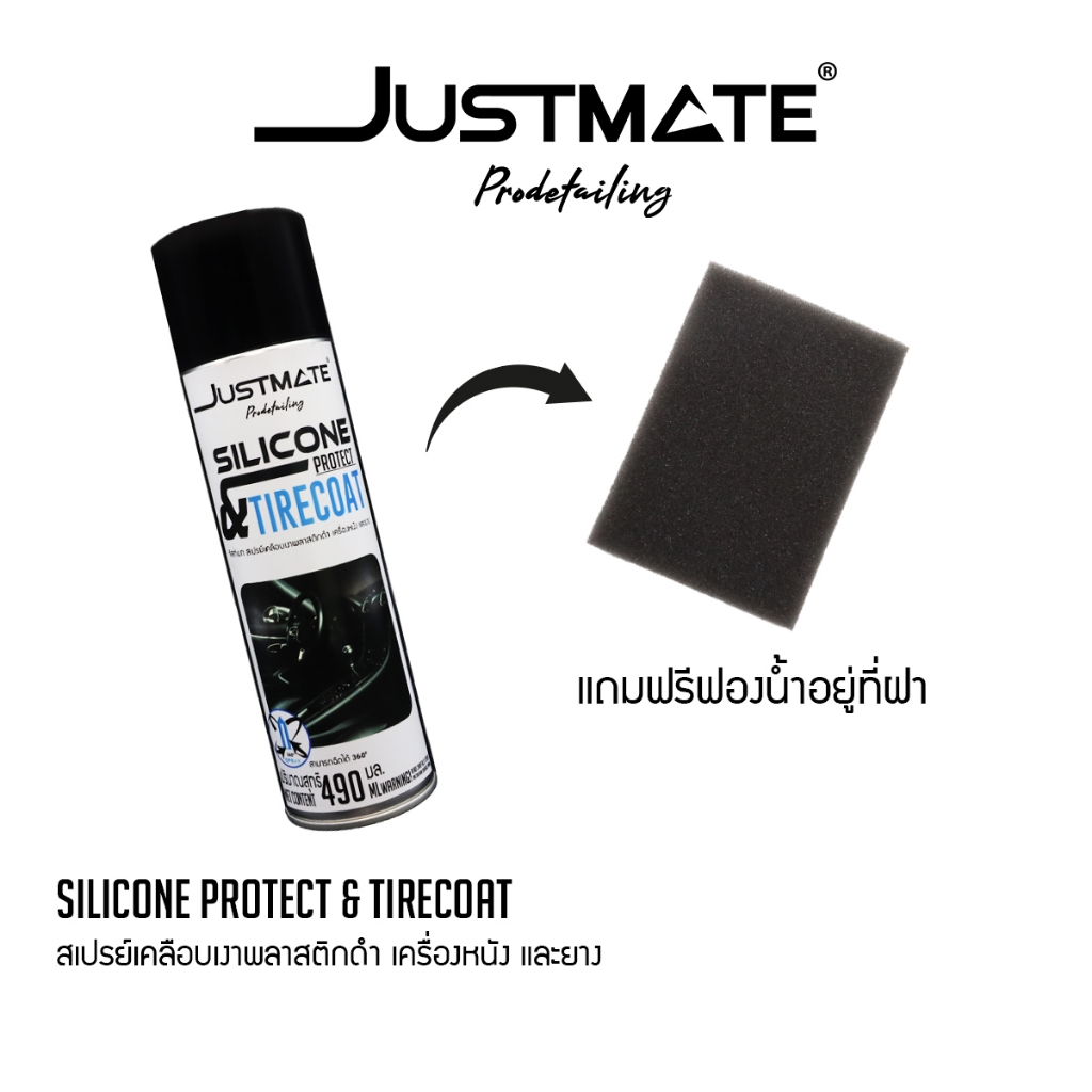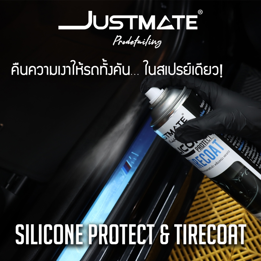 [JUSTMATE PRO DETAILING] สเปรย์เคลือบเงาพลาสติกดำ เครื่องหนัง และยางดำ SILICONE PROTECT & TIRECOAT