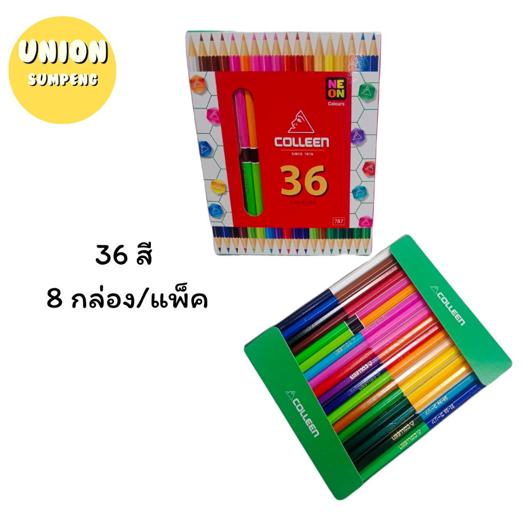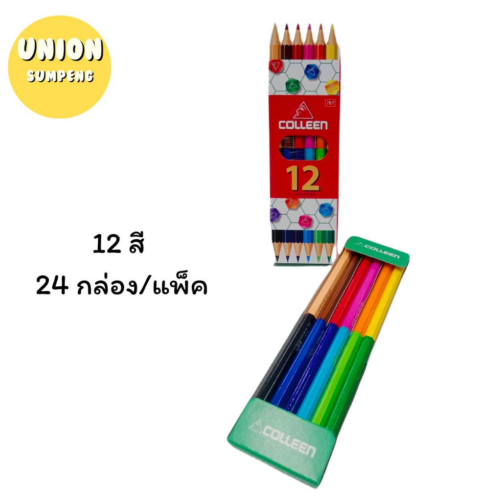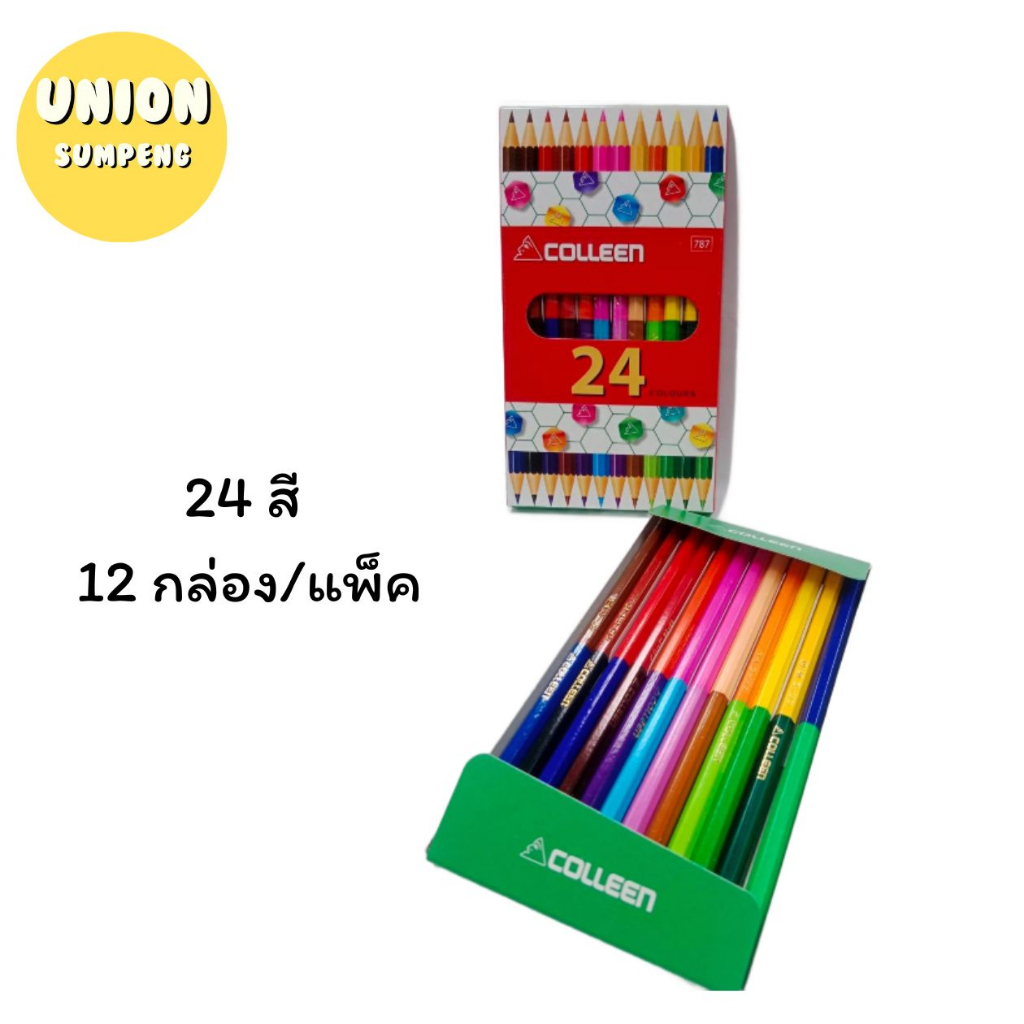 (USP)💯แท้ขายส่ง💯(ยกกล่อง4-24ชุด) COLLEEN สีไม้คอลลีน รุ่น2หัว สีไม้คลอรีน 2สีในแท่งเดียว ดินสอสี 12/24/36/48/60สี No.787
