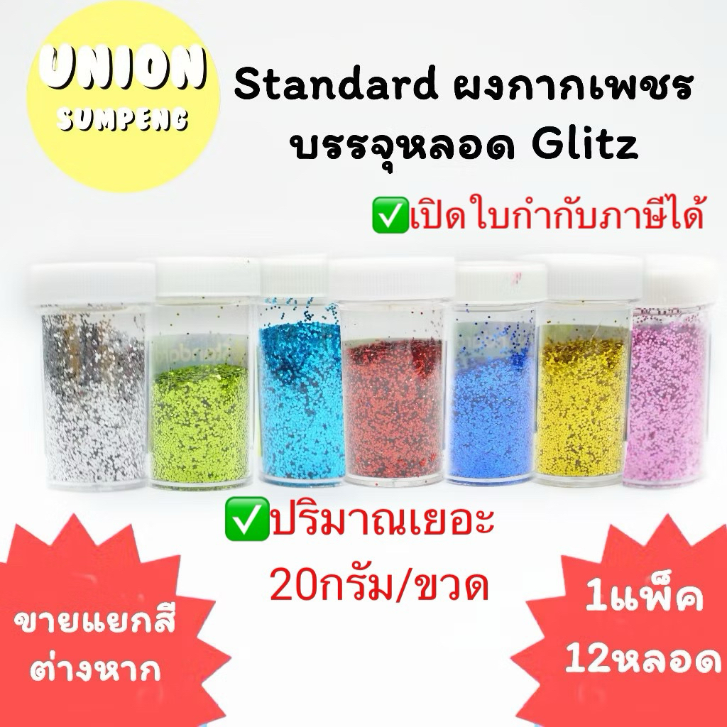 (USP)💯แท้พร้อมส่ง/สีสด💯(กล่อง12หลอด) Standard ผงกากเพชร บรรจุหลอด Glitz กากเพชร ผงเพชร หลากสี กากเพชรหลอด 20g/หลอด