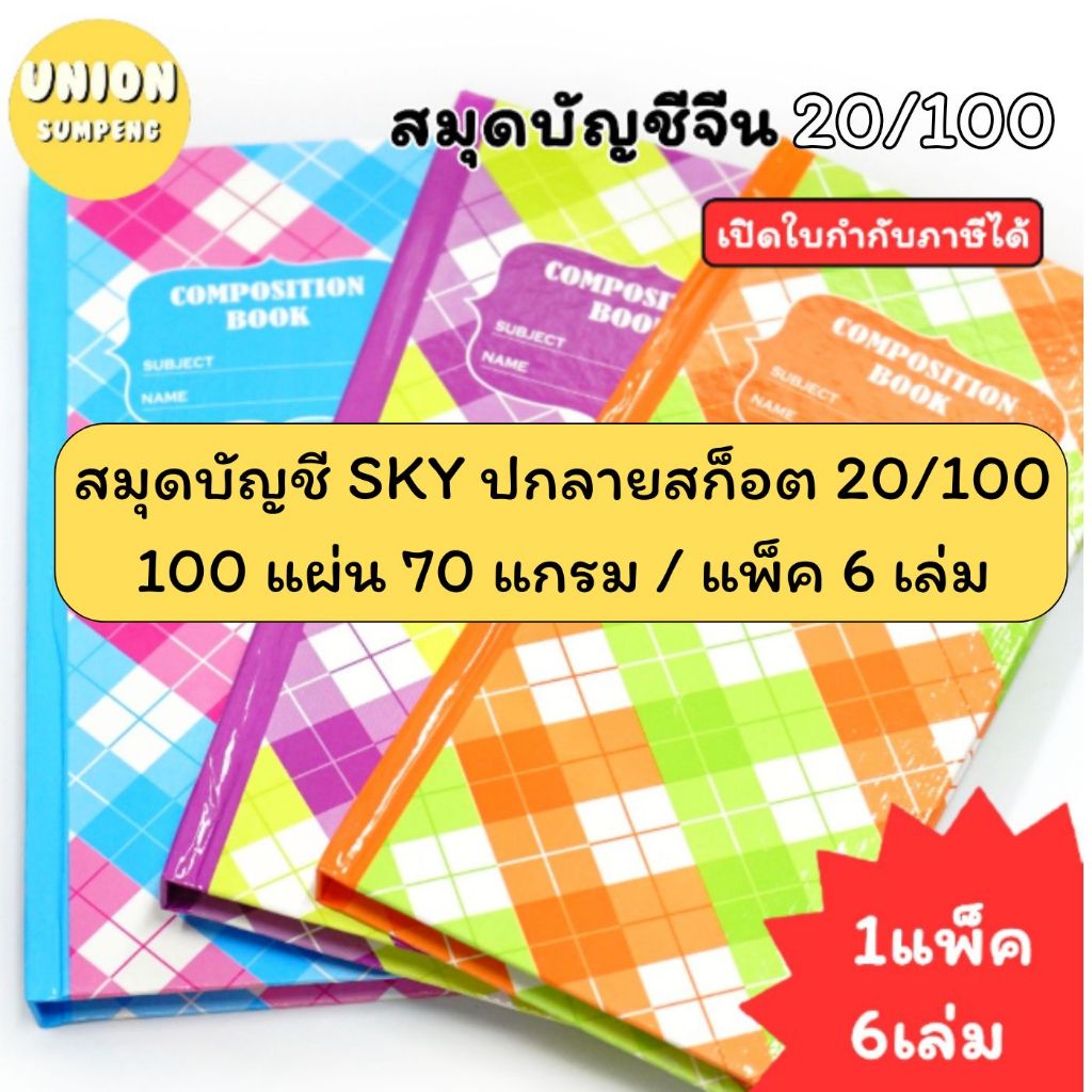 (USP)💢หนา100แผ่นเต็ม💢(แพ็ค6เล่ม) SKY สมุดบัญชี 20/100 ปกลายสก็อต 100แผ่น สมุดบัญชี บัญชีจีน บัญชี ตีเส้น ลายสก็อต
