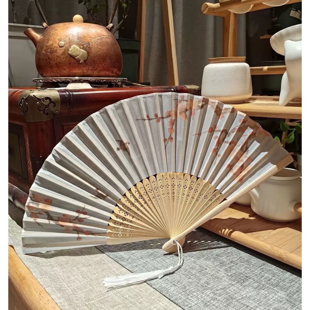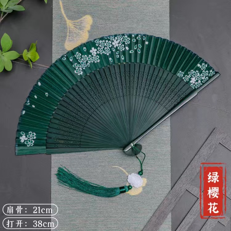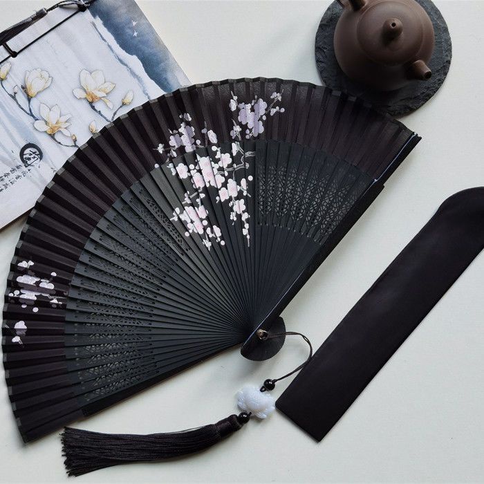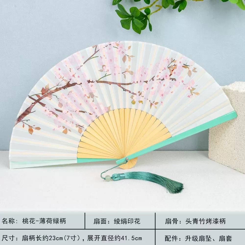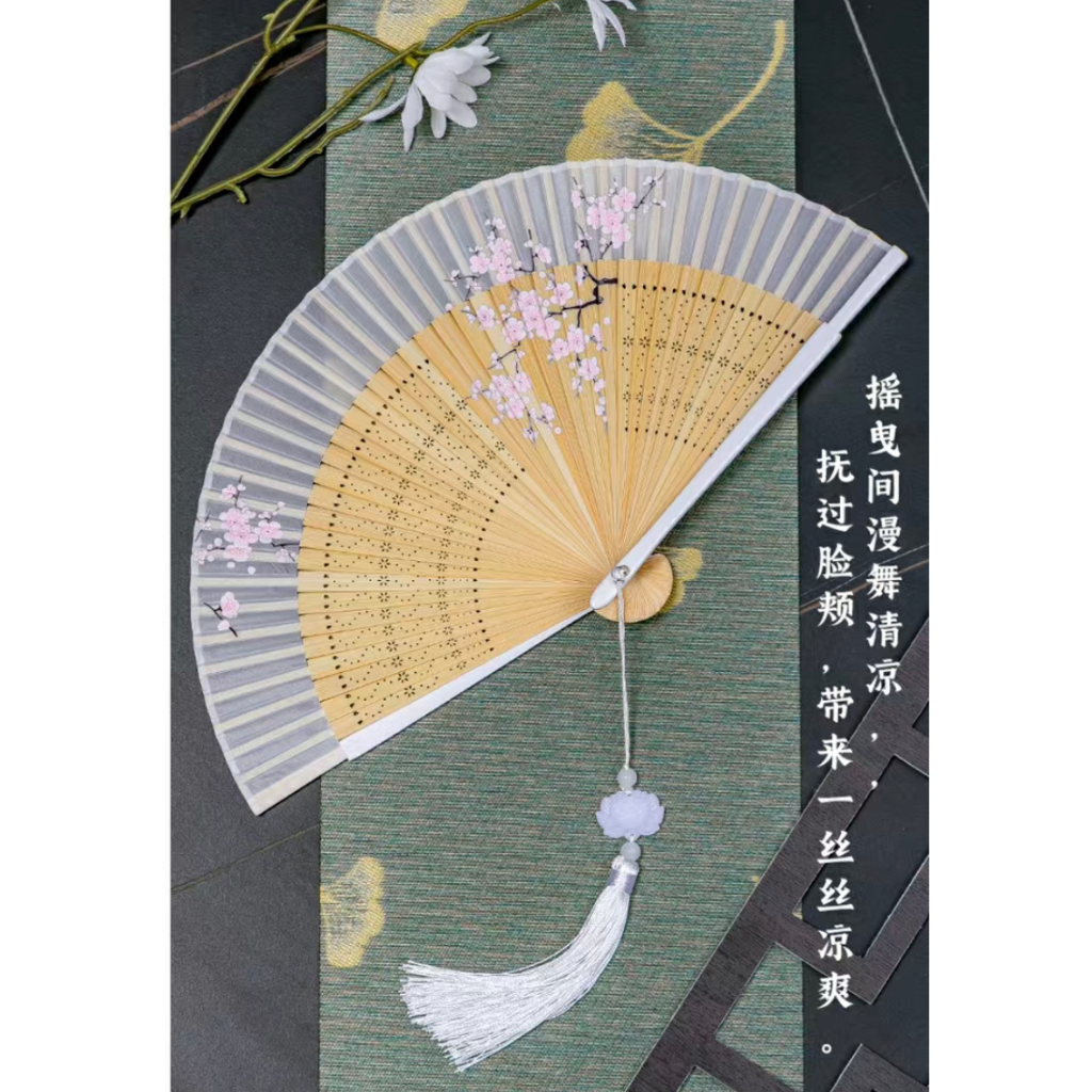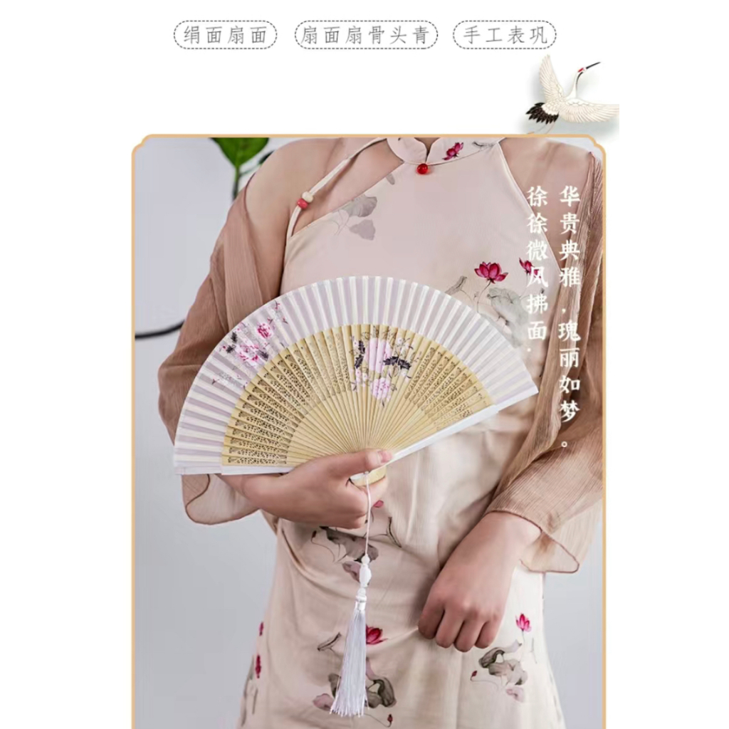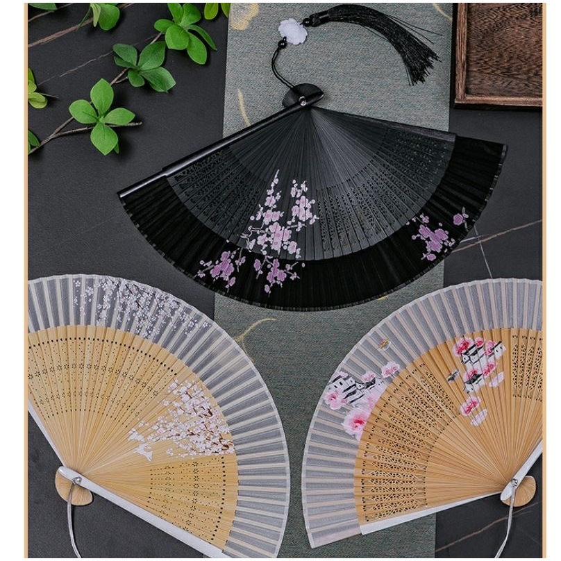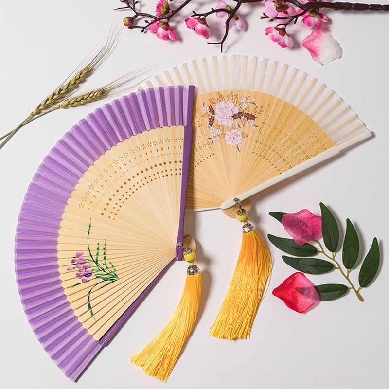 พัดจีน พัดไม้ไผ่ แบบพับได้ ขนาดพกพา พร้อมกระเป๋า สไตล์จีน แฟชั่นฤดูร้อน สําหรับเต้นรํา พัดลมมือ