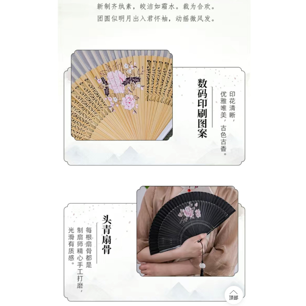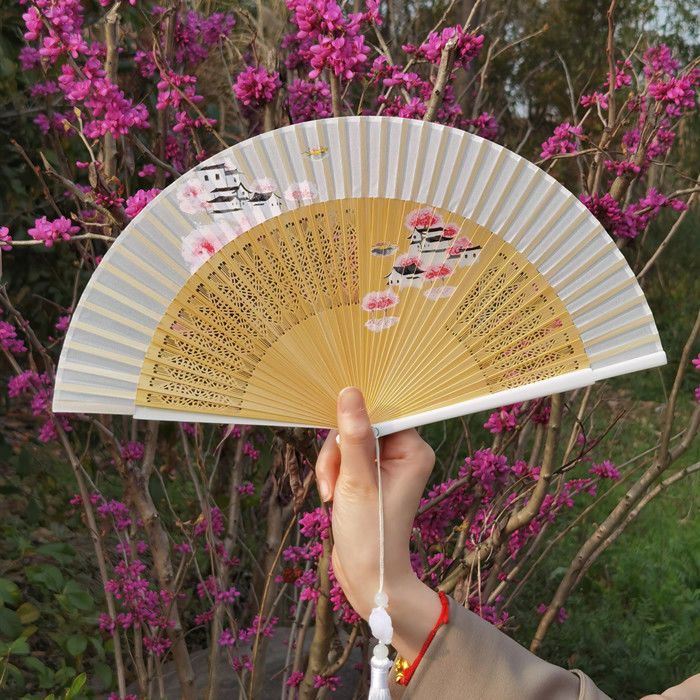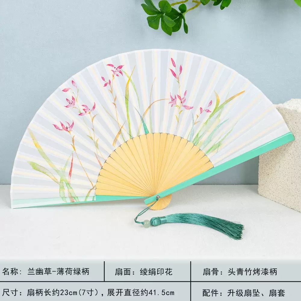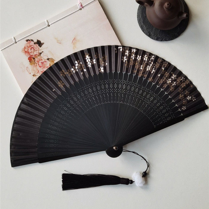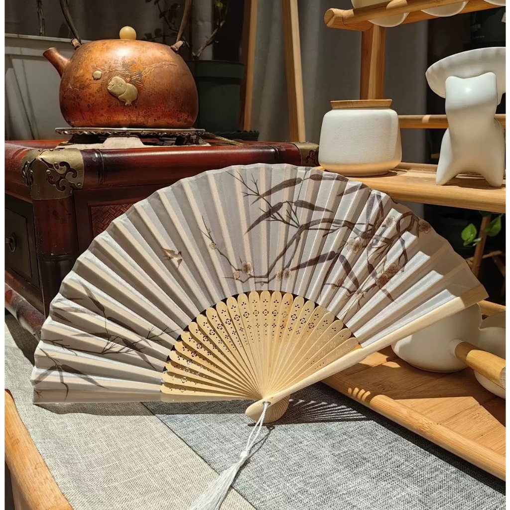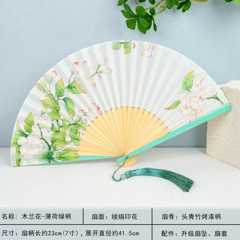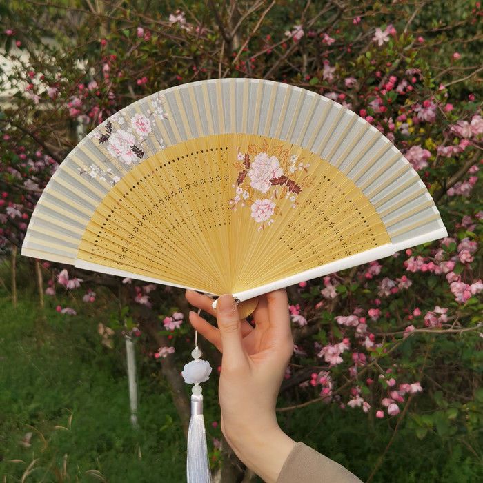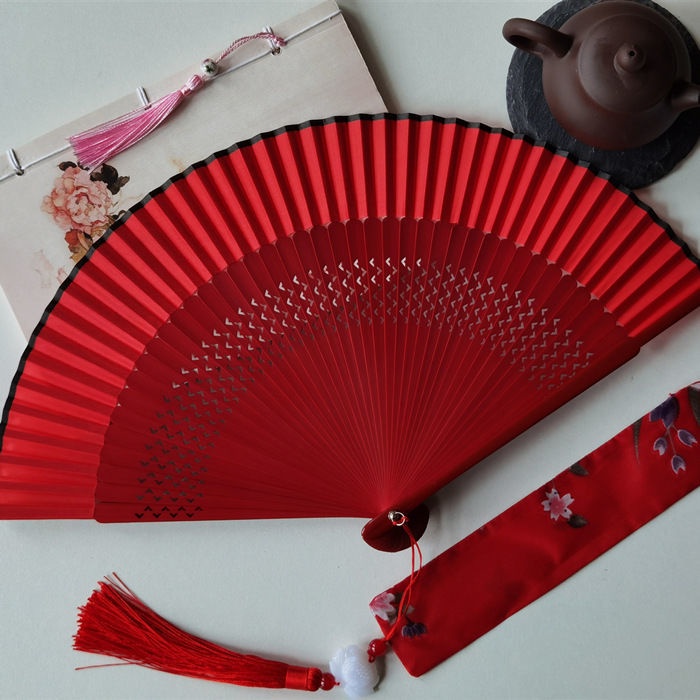 พัดจีน พัดไม้ไผ่ แบบพับได้ ขนาดพกพา พร้อมกระเป๋า สไตล์จีน แฟชั่นฤดูร้อน สําหรับเต้นรํา พัดลมมือ