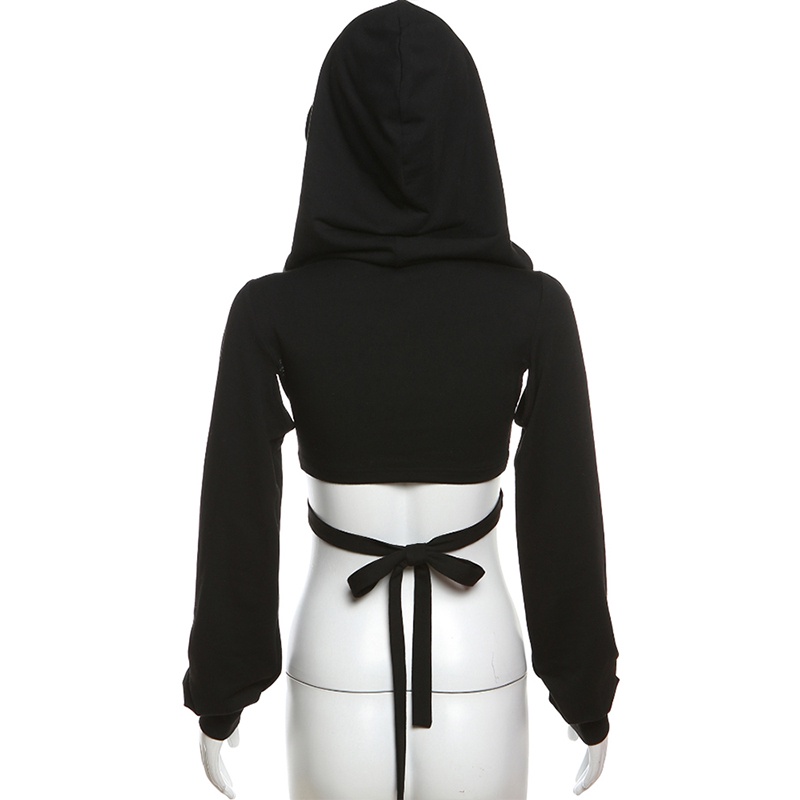 เสื้อกันหนาวแขนยาว มีฮู้ด แบบสวมหัว เข้ารูป สีดํา แฟชั่นสําหรับสตรี