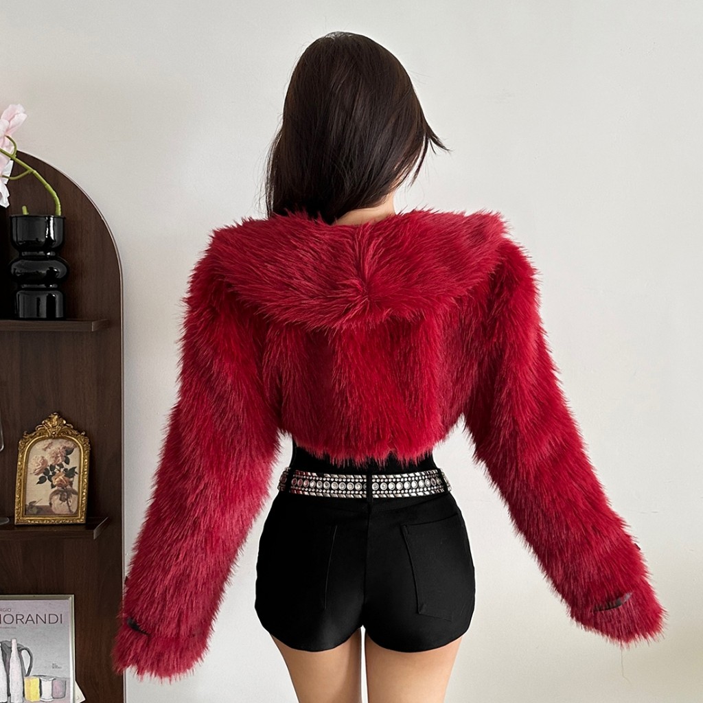 แปลก Puss Hipster Furs Crop Coat ผู้หญิงหรูหราฤดูหนาวที่อบอุ่นเต็มแขน Chic Wild Coquette Party Streetwear แฟชั่น Basic Outwear