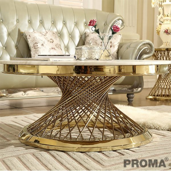 [พรีออเดอร์ 30-45 วัน] Proma โต๊ะกลางโซฟาหินอ่อนหรูหรา ทรงกลม ขาสแตนเลสบิดเกลียว