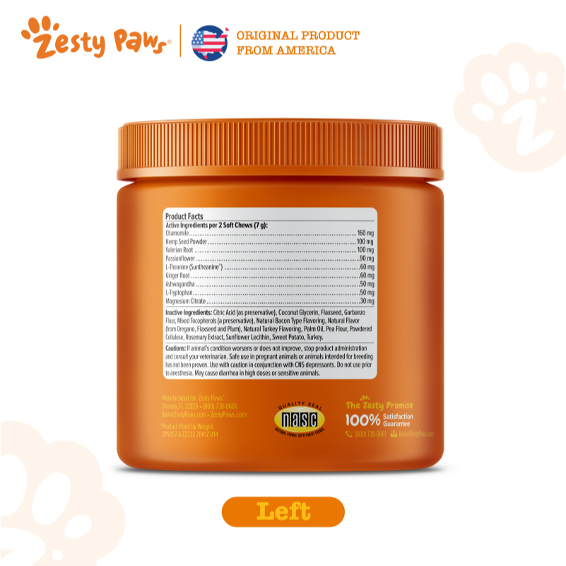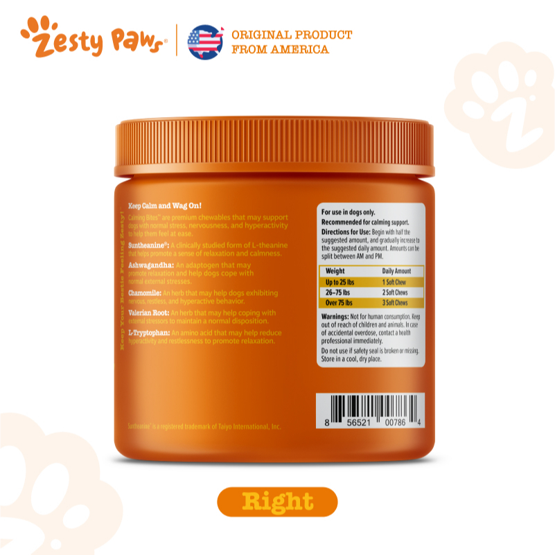 Zesty Paws Calming Bites with Suntheanine for Dogs Behavior [รสไก่งวง] (แบบนุ่ม 90 เม็ด) (EXP:07 2026)