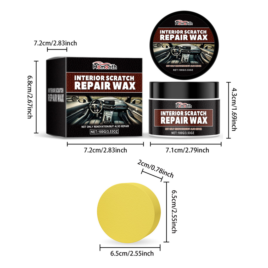 ชุดแว็กซ์ซ่อมแซมรอยขีดข่วนภายในรถ – 100 กรัม + ฟองน้ํา, สูตรแคลเซียมคาร์บอเนตสําหรับหนัง, พลาสติกและไวนิลกําจัดรอยขีดข่วนและป้อง