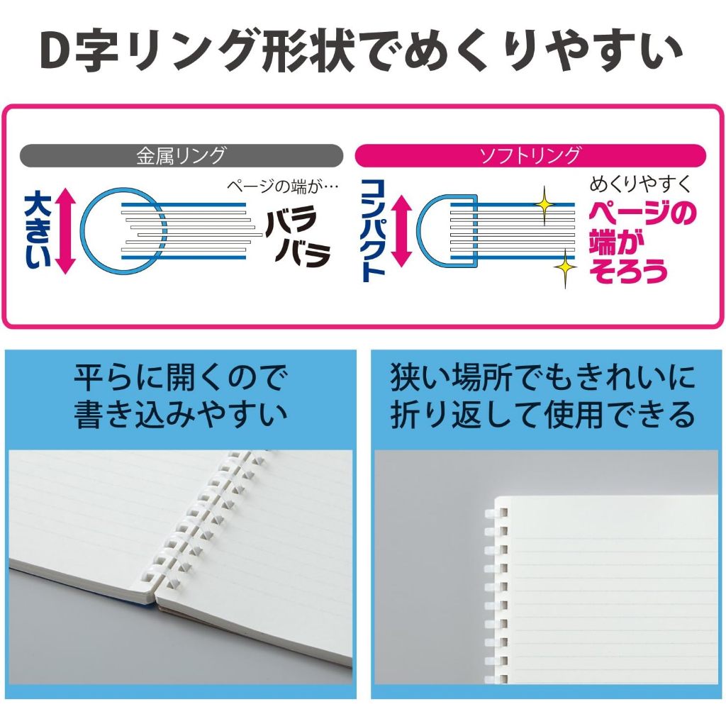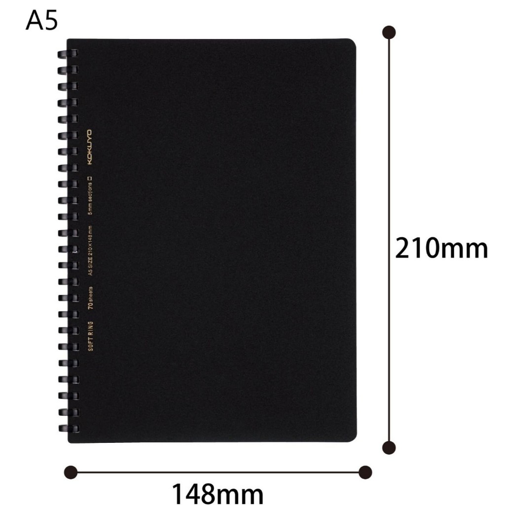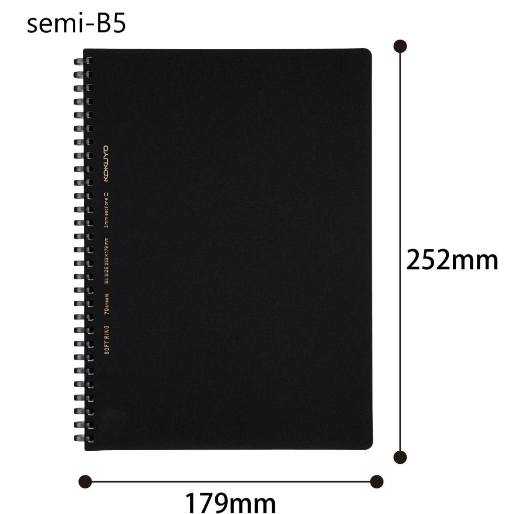 สมุดโน้ตวงแหวนซอฟต์ KOKUYO แบบธุรกิจ 70 แผ่น ขนาด Semi-B5/A5 ลายตาราง เครื่องเขียนจากญี่ปุ่น