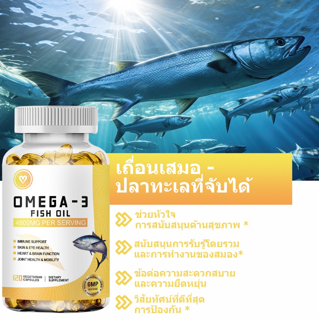 ISNIH Omega 3 Fish Oil Capsule Supplement อาหารเสริมน้ำมันปลาโอเมก้า 3 4800mg บํารุงสุขภาพหัวใจและสมอง