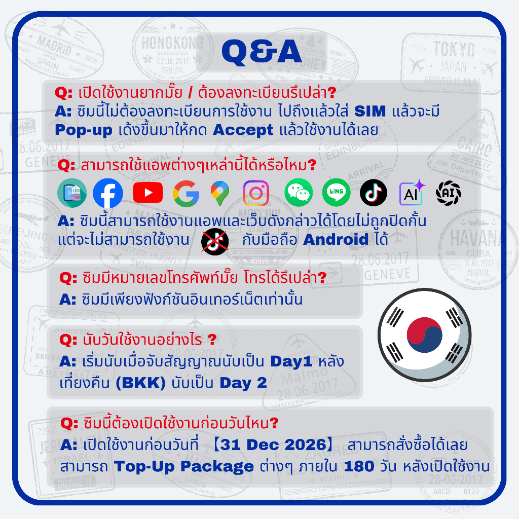 【The Global SIM】South Korea SIM ซิมเกาหลีใต้ SKT 3 -15 Days 4G/5G Max speed Limit/day | Total