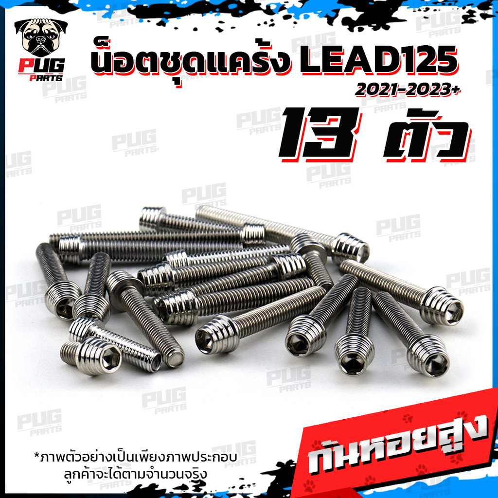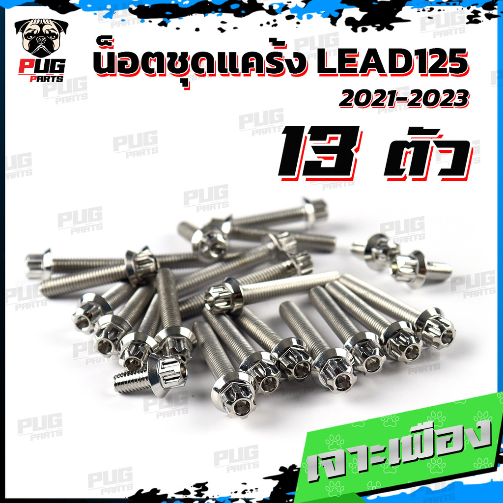 น็อตชุดแคร้งLead125 น็อตชุดแคร้งลีด125 จำนวน 13 ตัวสแตนเลสแท้ น็อตชุดแคร้งเครื่องLead 125 น็อตแคร้งเครื่องลีด