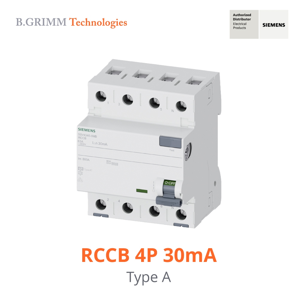 SIEMENS เบรกเกอร์กันไฟดูด-ไฟรั่ว RCCB 4P 30mA Type A