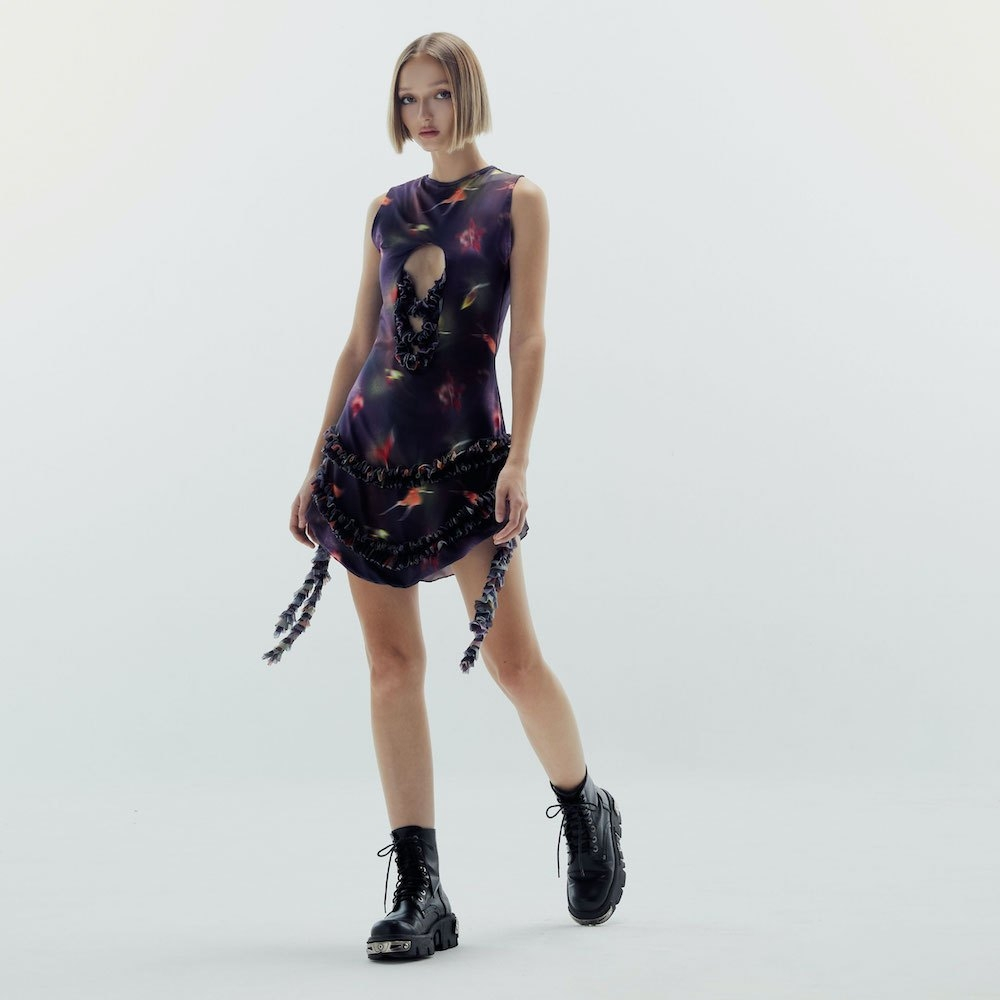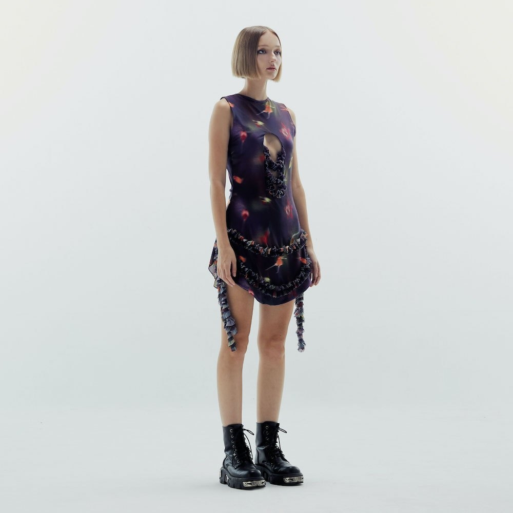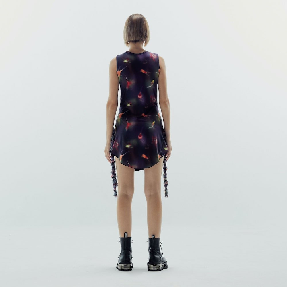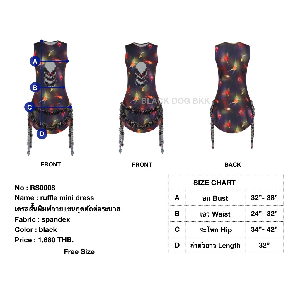 BLACKDOG BKK - RS0008 - ruffle mini dress - เดรสสั้นพิมพ์ลายแขนกุด ตัดต่อระบาย