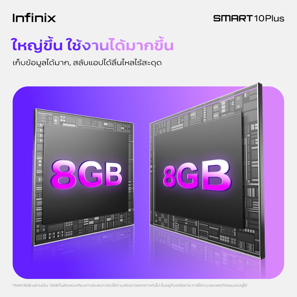 Infinix SMART 10 Plus 128+8GB (ผสานRAMสูงสุด 16GB) โทรศัพท์มือถือจอลื่นไหล 120Hz แบตเตอรี่ 6000mAh 18W ชาร์จเร็ว
