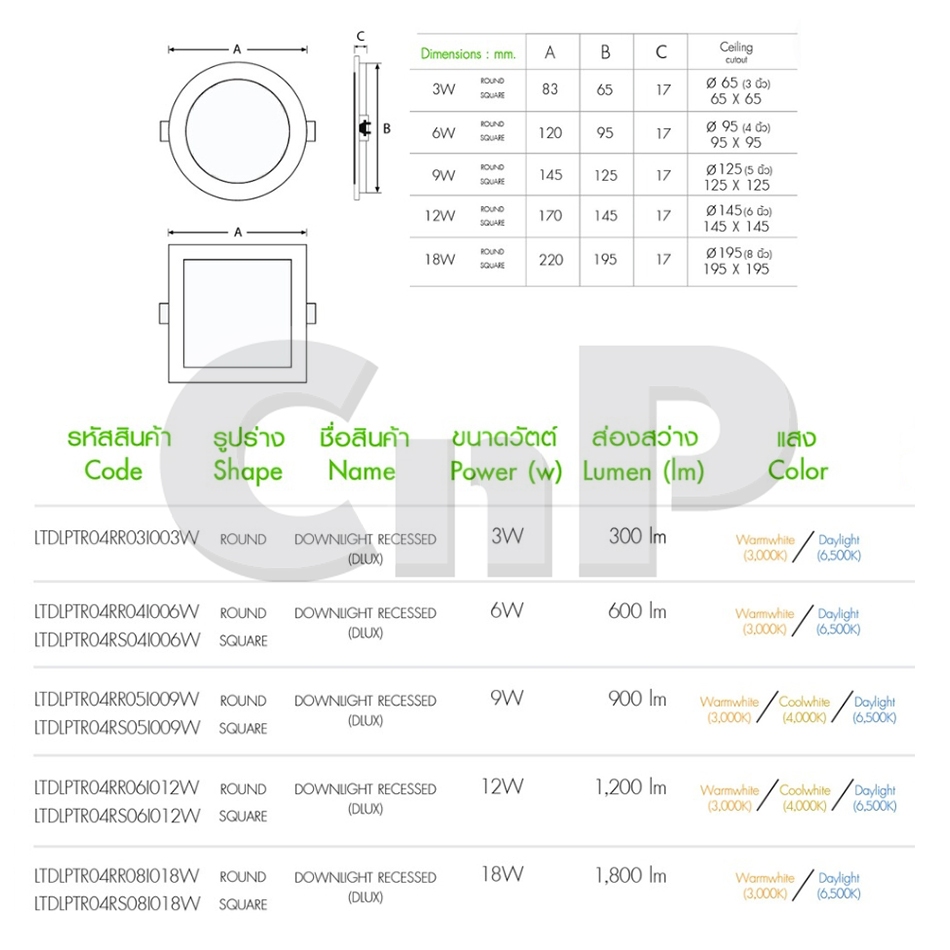 LiTON โคมไฟดาวน์ไลท์ ฝังฝ้า 8 นิ้ว (8") Panel LED 18W สีขาว