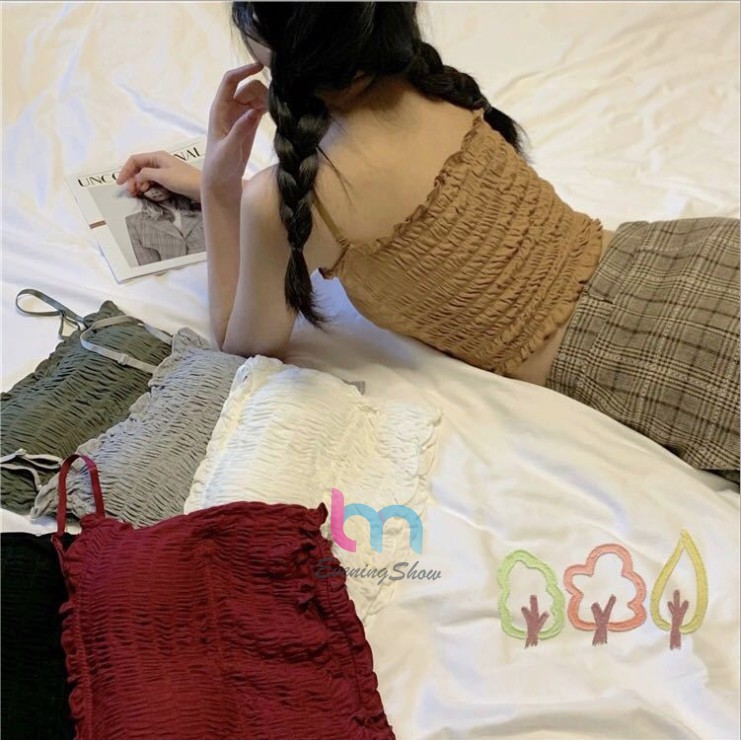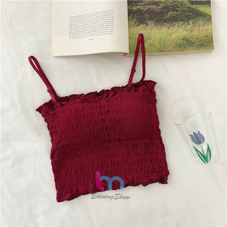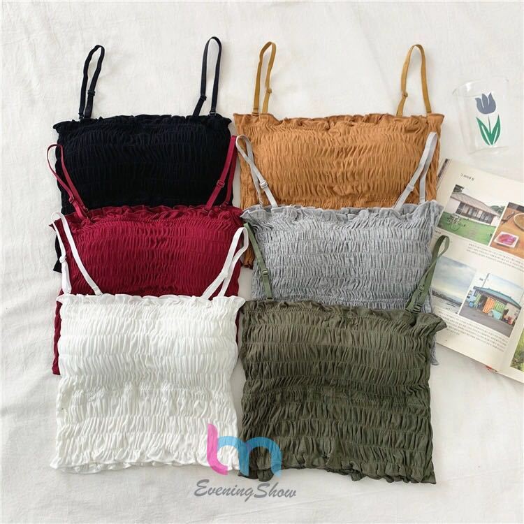 พร้อมส่ง‼️สายเดี่ยวทรงเกาะอก มีสีพื้นและขอบตัด C26