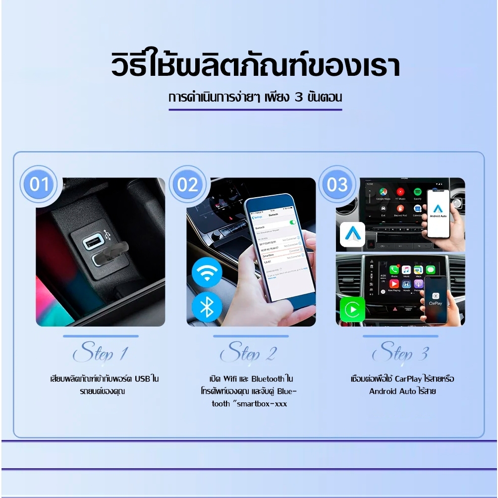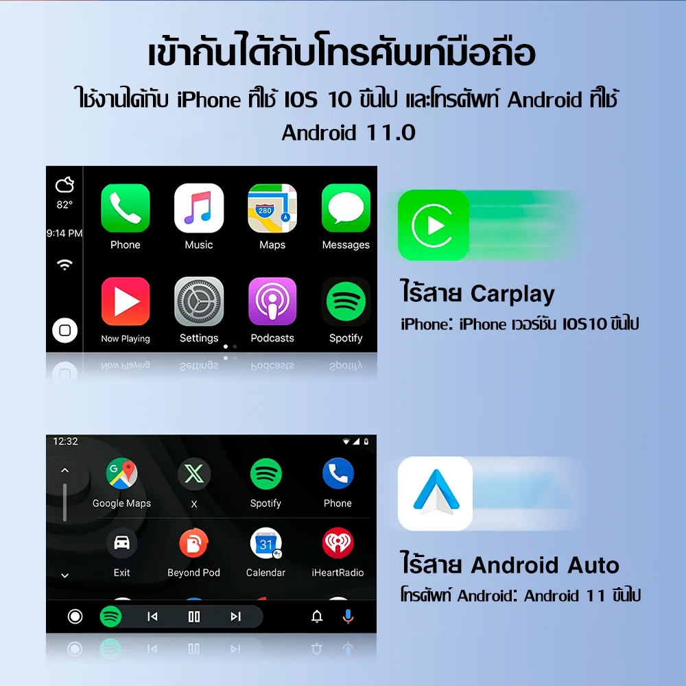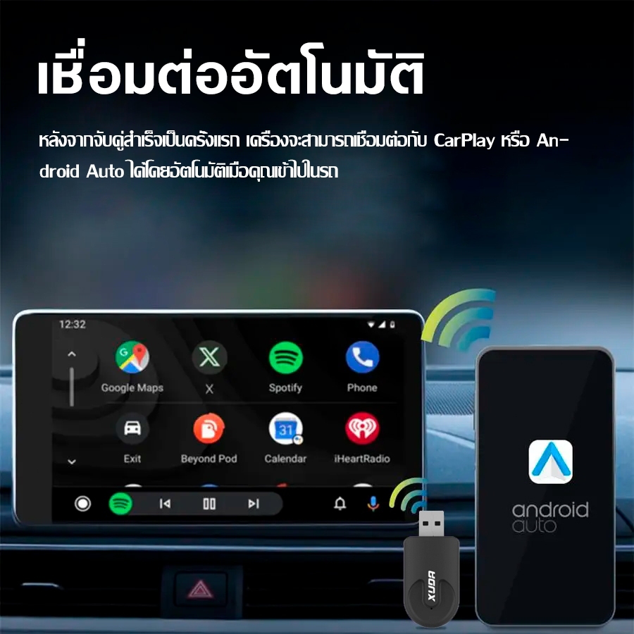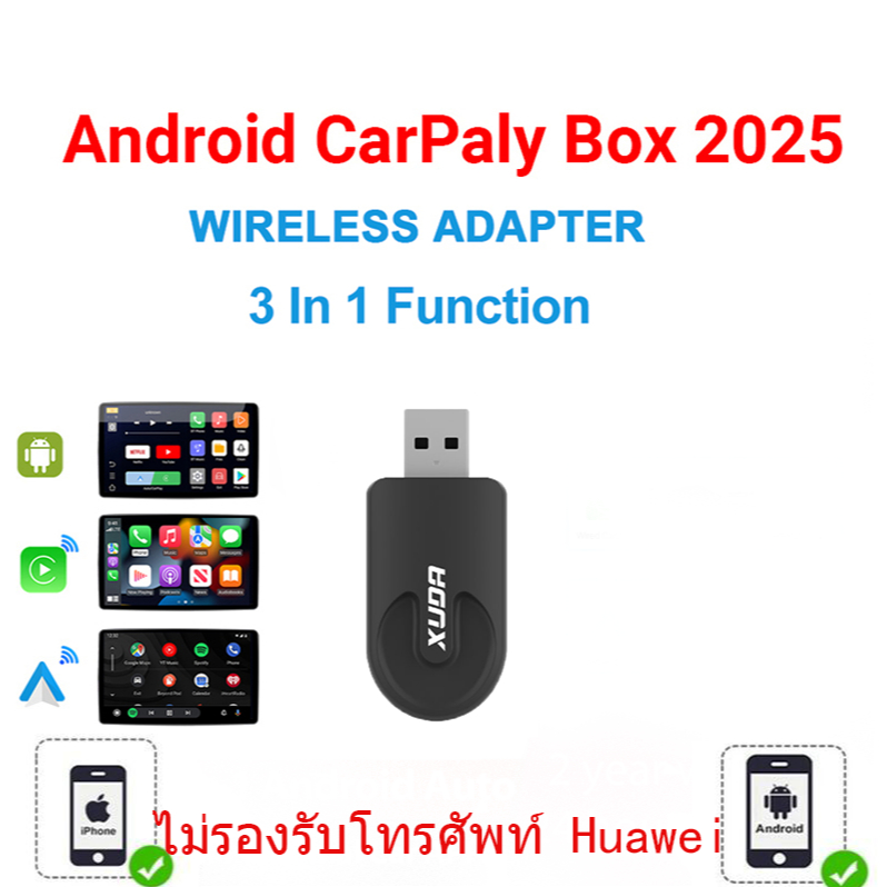 Xuda Carplay ไร้สาย Android auto Wireless adapter แบบใช้สาย เป็นไร้สาย USB ดองเกิล Plug and Play เชื่อมต่ออัตโนมัติไ