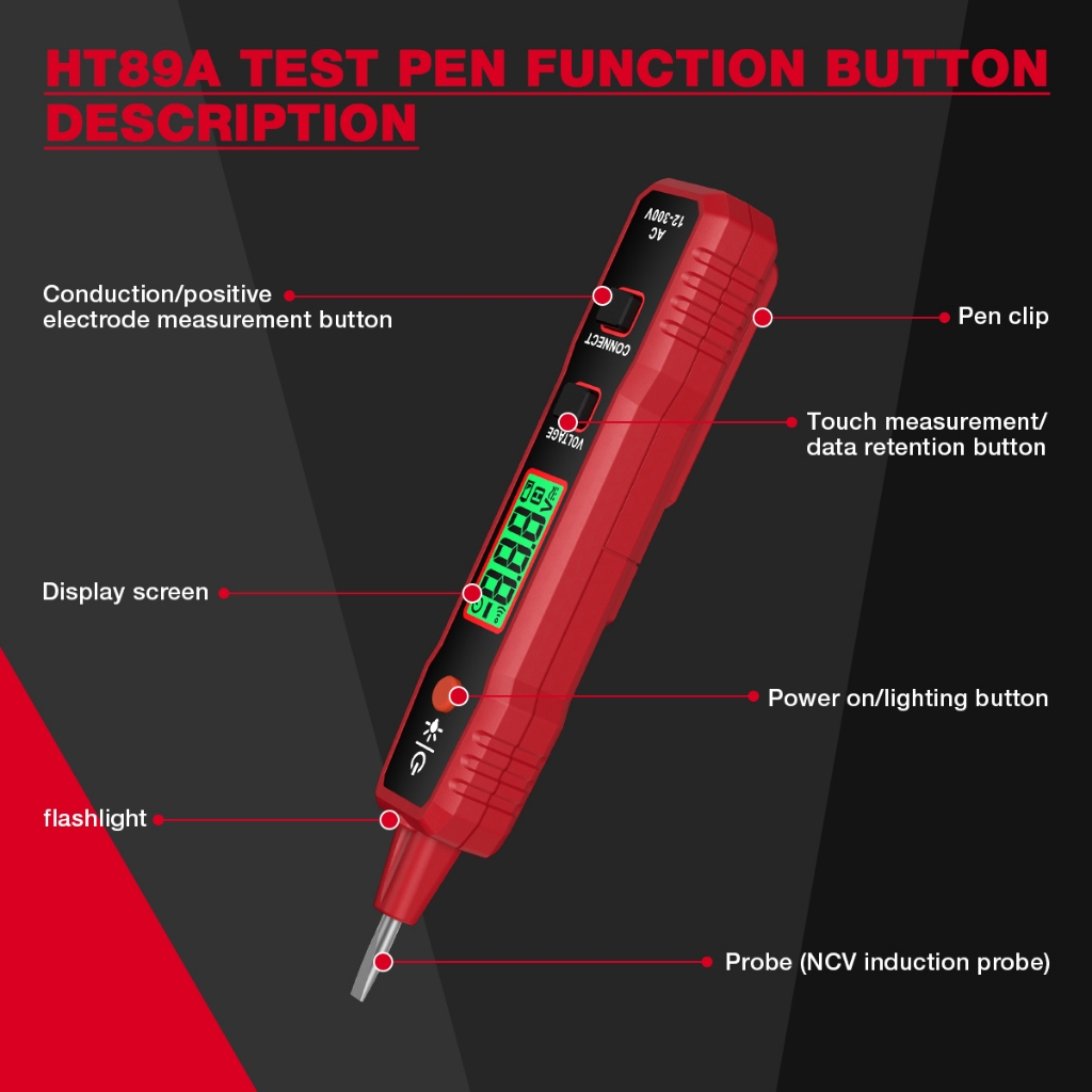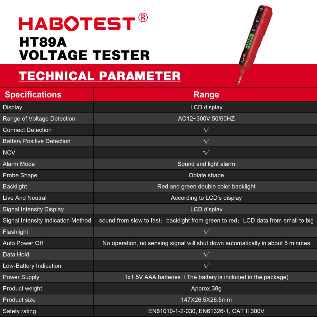 【มาถึงภายใน 3 วัน】HABOTEST HT89A NCV Test Pen 12 ~ 300V AC Voltage Detector ดิจิตอลมัลติมิเตอร์ปากกา Zero Wire Detector