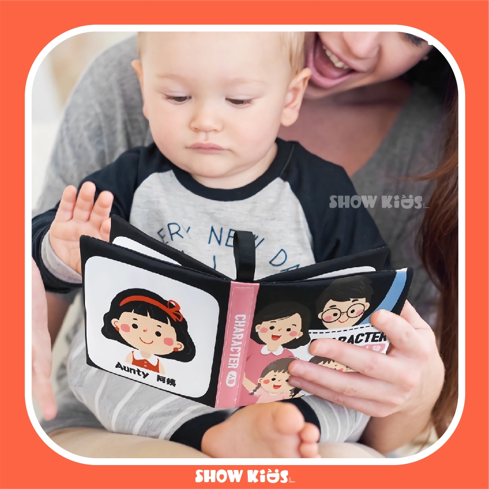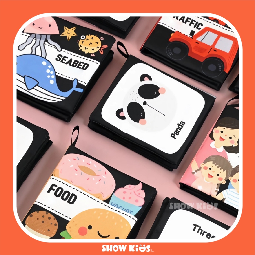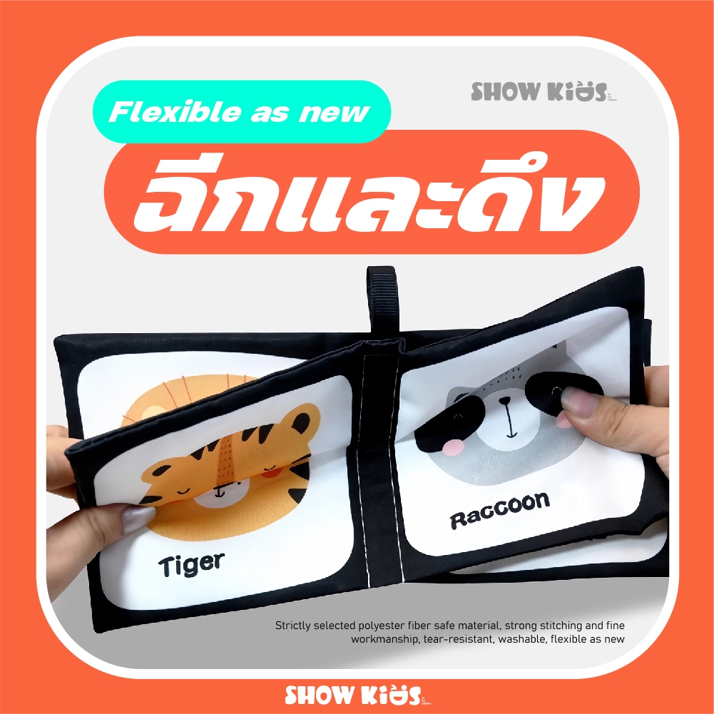 4 หน้าหนังสือเด็กทารกตรัสรู้การเรียนรู้ในช่วงต้นสีดําและสีขาวหนังสือผ้าสําหรับเด็กวัยหัดเดิน มอนเตสซอรี่