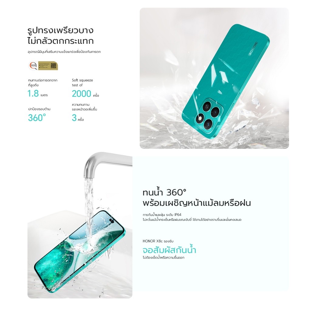 HONOR X8c (8+512GB) โทรศัพท์มือถือ ถึก ทน คุ้ม | หน้า จอ 6.7" 120Hz AMOLED I Snapdragon 685 | กันนํ้า | แบตเตอรี่ 5000mAh