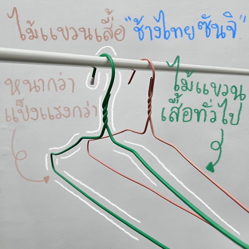 ไม้แขวนเสื้อ ไม้แขวนเสื้อ รุ่นหนาพิเศษ 42mm ตราช้างไทยซันจิ แพค 12 ชิ้น