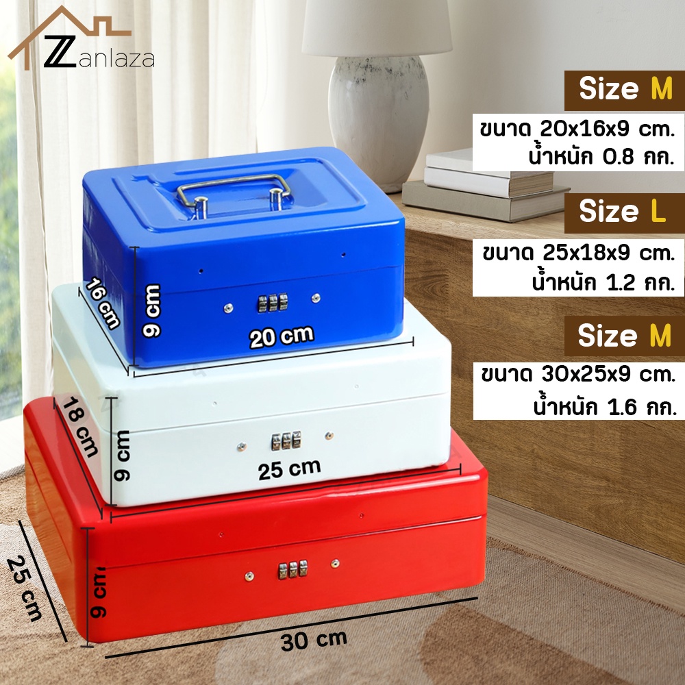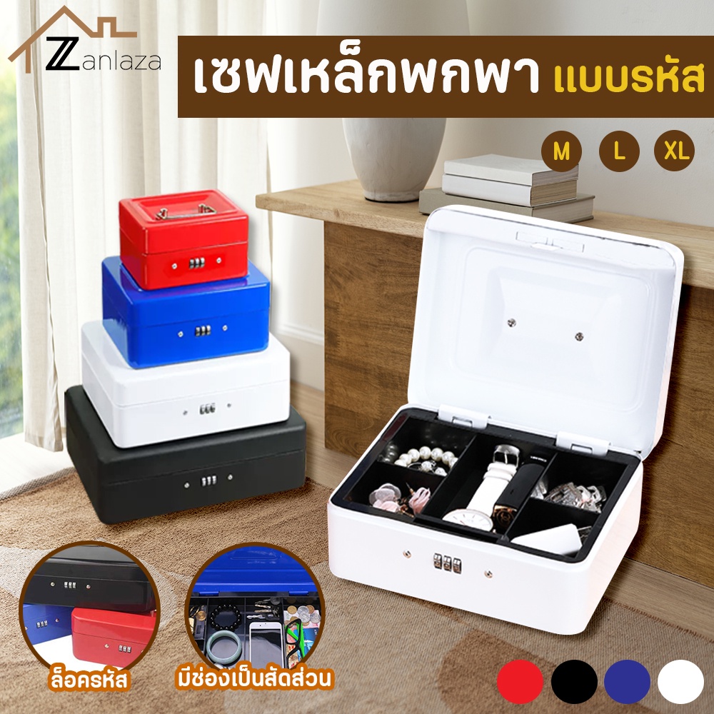 Zanlaza เซฟหิ้ว แบบรหัส ตู้เซฟ ไซส์ M/L/XL กล่องเหล็กเก็บเงิน กล่องใส่เงิน กล่องเซฟ รหัสล็อค Cash Box เซฟพกพา