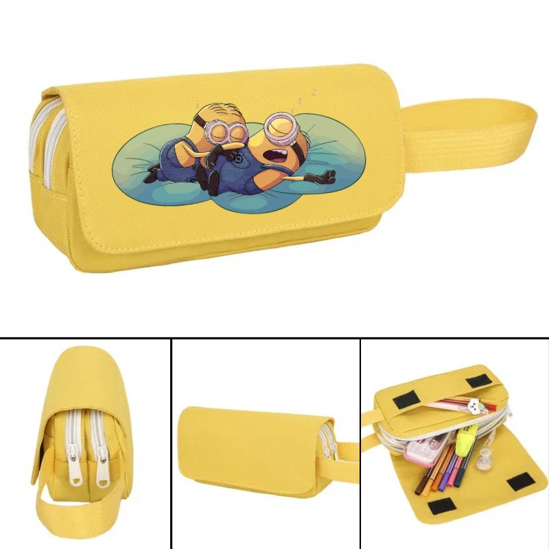 กระเป๋าปากกามินเนี่ยนความจุขนาดใหญ่กล่องเก็บเครื่องเขียนซิปคู่นักเรียนกระเป๋าปากกาการ์ตูนอุปกรณ์การเรียนกระเป๋า