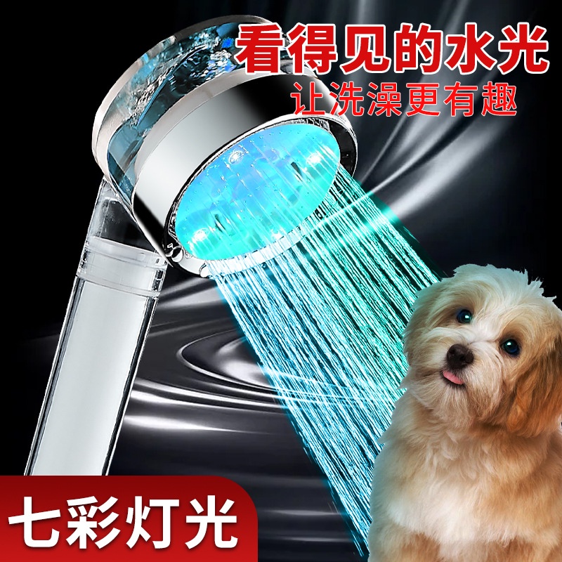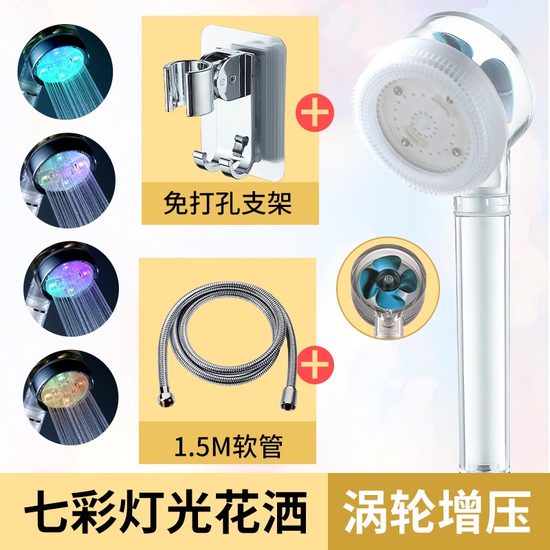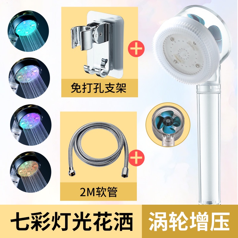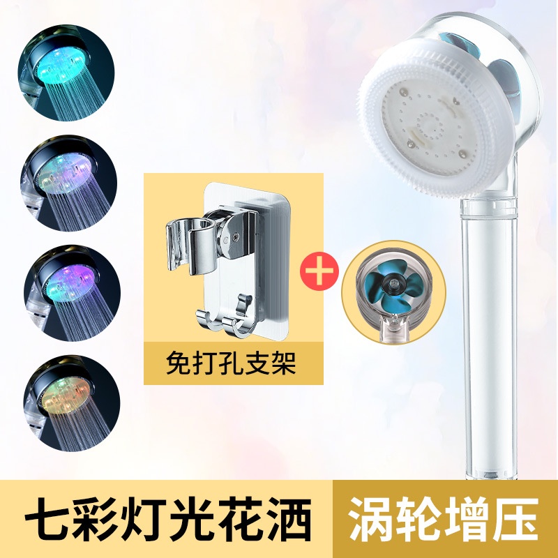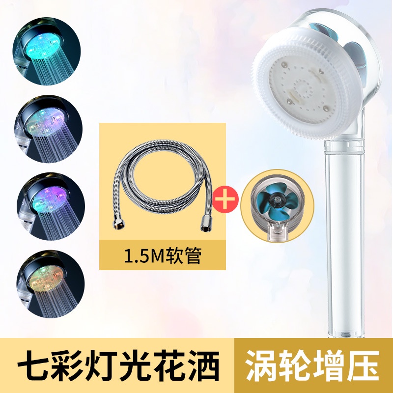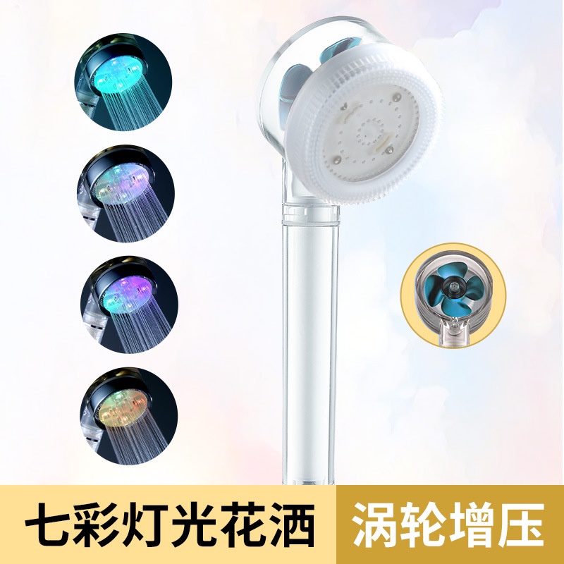 เทอร์โบฝักบัวอาบน้ำฝักบัว LED เจ็ดสีควบคุมอุณหภูมิสามสีเรืองแสงนวดพัดลมกรองหัวฝักบัวมือถือ