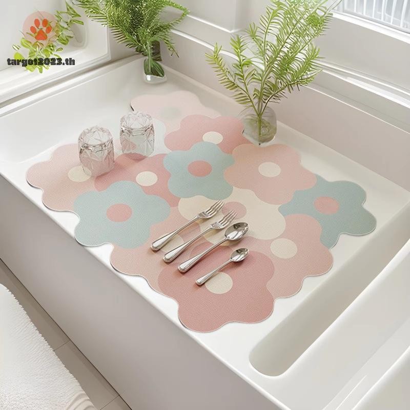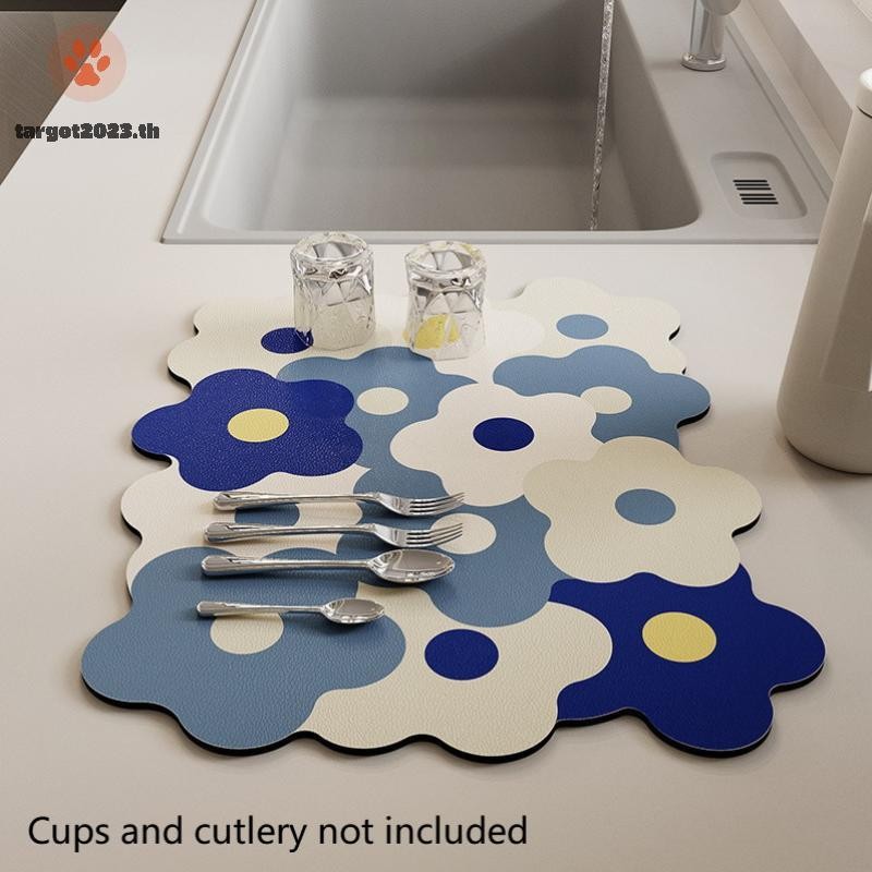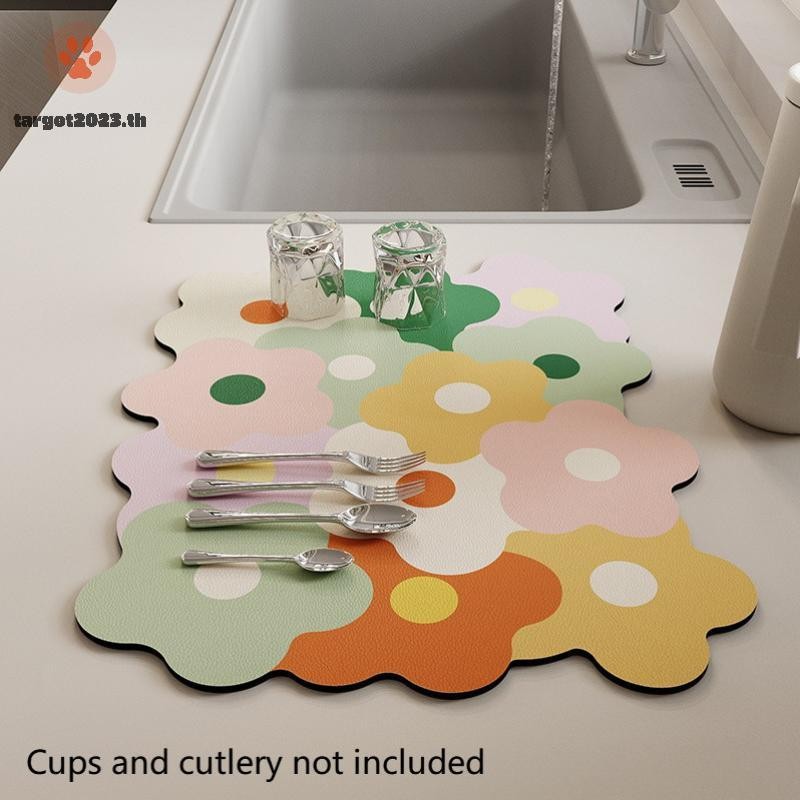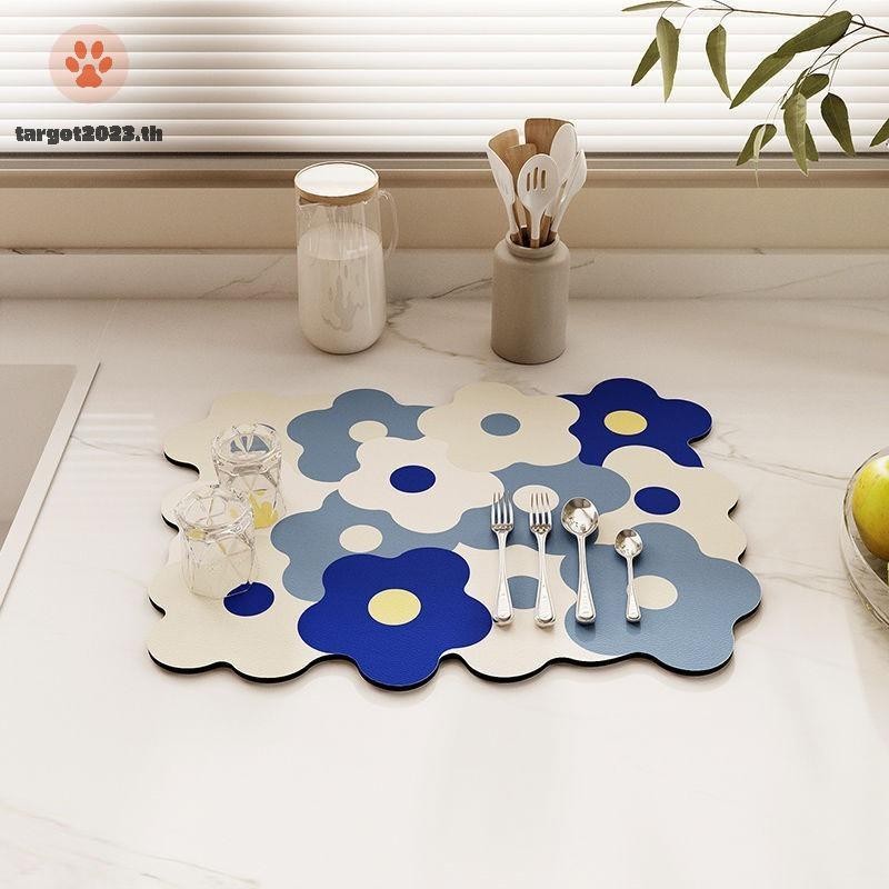 🥃🥃แห้งเร็วจานแห้งดอกไม้ยางบนโต๊ะอาหาร Draining Pads พรมห้องครัวอาหารเย็น Placemat Super ดูดซับกาแฟท่อระบายน้ํา Pad [TH]