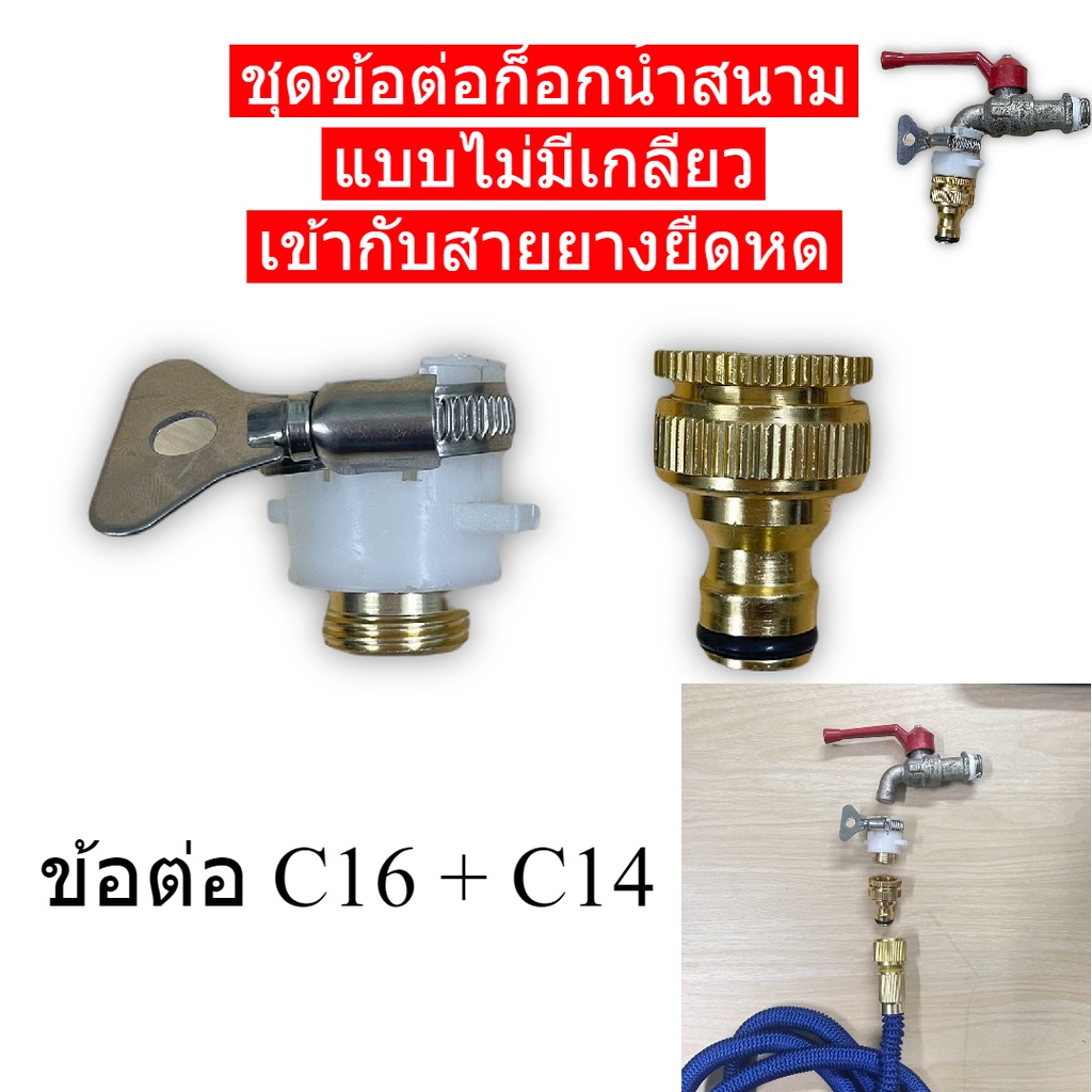 ข้อต่อก็อกน้ำสนาม4หุน แบบไม่มีเกลียวหมุน ต่อเข้ากับสายยางธรรมดา และสายยางยืดหด