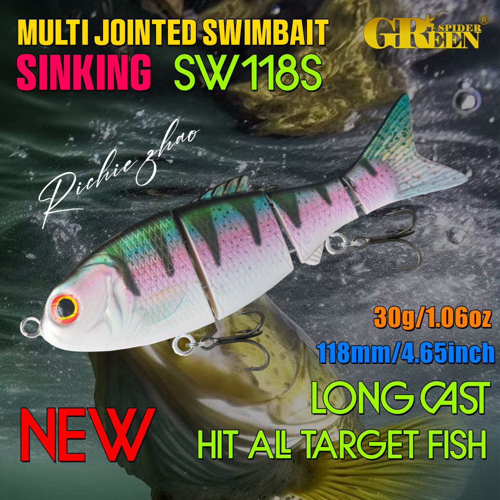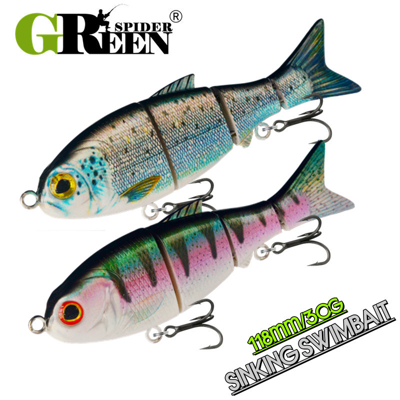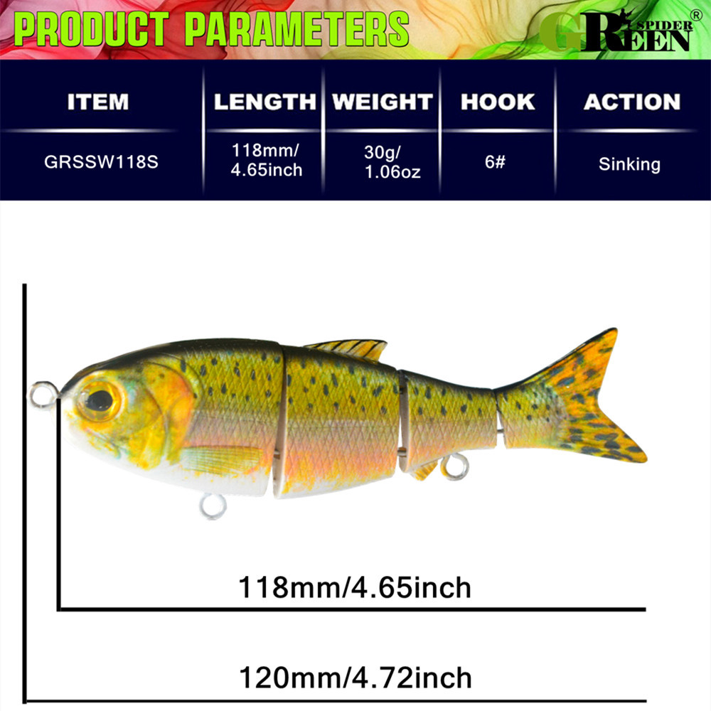 GREENSPIDER Swimbait 118mm30g Multi Joint Lure Sinking Bionic ปลาว่ายน้ํา Pesca Bass Treble Hook ปลาคาร์พตกปลาเหยื่อ Hard
