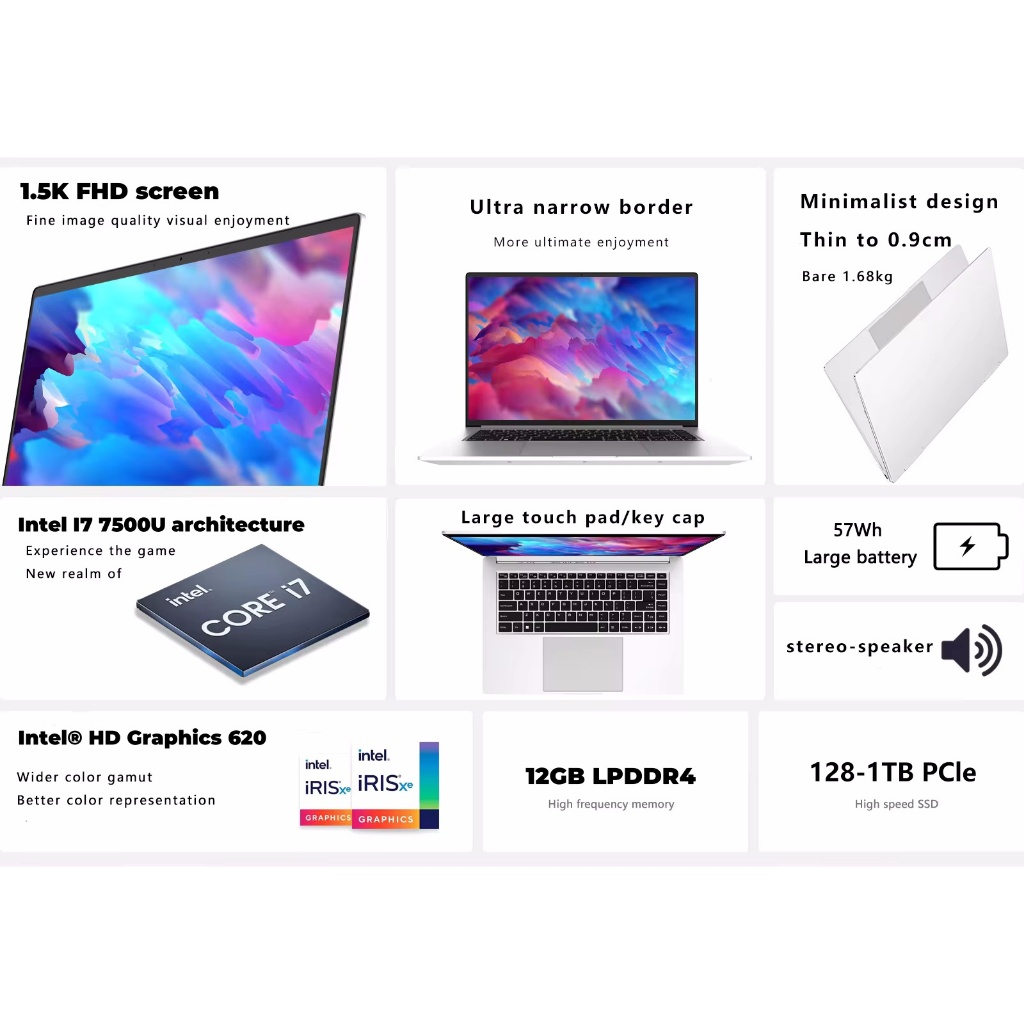 14.4 นิ้ว Intel Core I7 1080P คอมพิวเตอร์แล็ปท็อป 12GB DDR4 256GB 512GB SSD โน้ตบุ๊ค WiFi 6 Backlit คีย์บอร์ดกล้องการเรียนรู้แล็ปท็อป