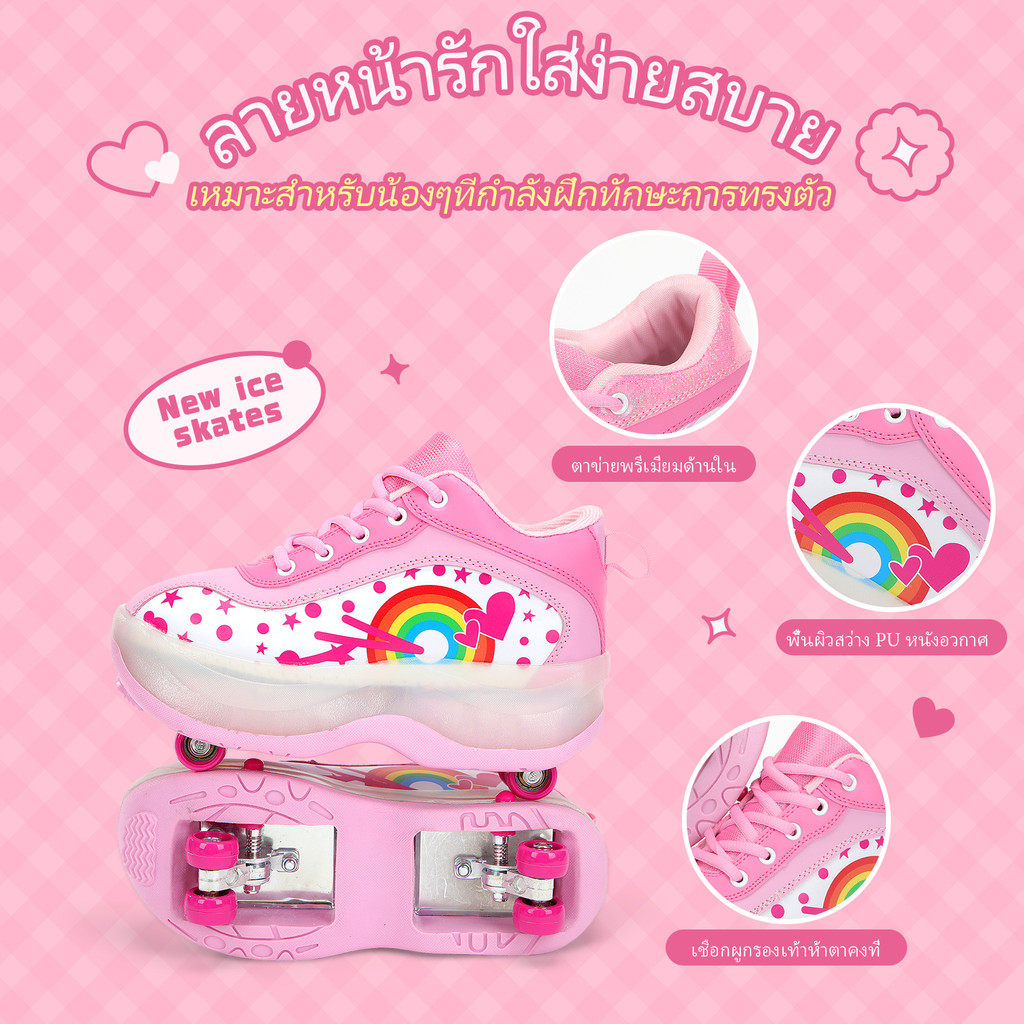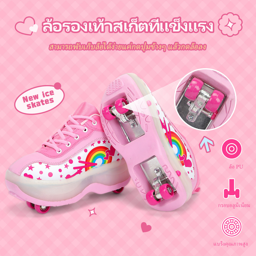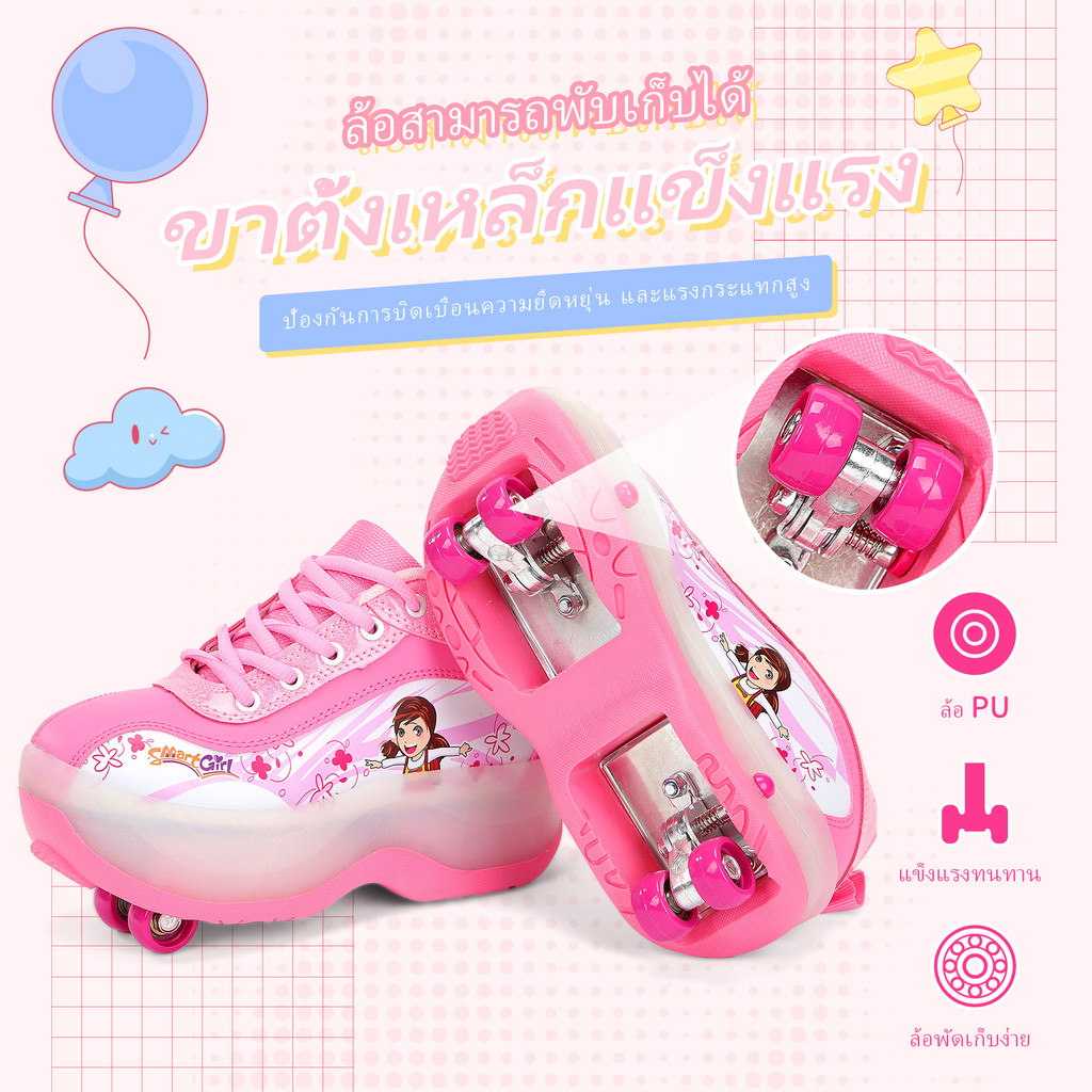 (4 ล้อพับเก็บได้) รองเท้าสเก็ต รองเท้ามีล้อ (ขนาด 28-36) มี 3 ลายให้เลือก C017 C021 C039