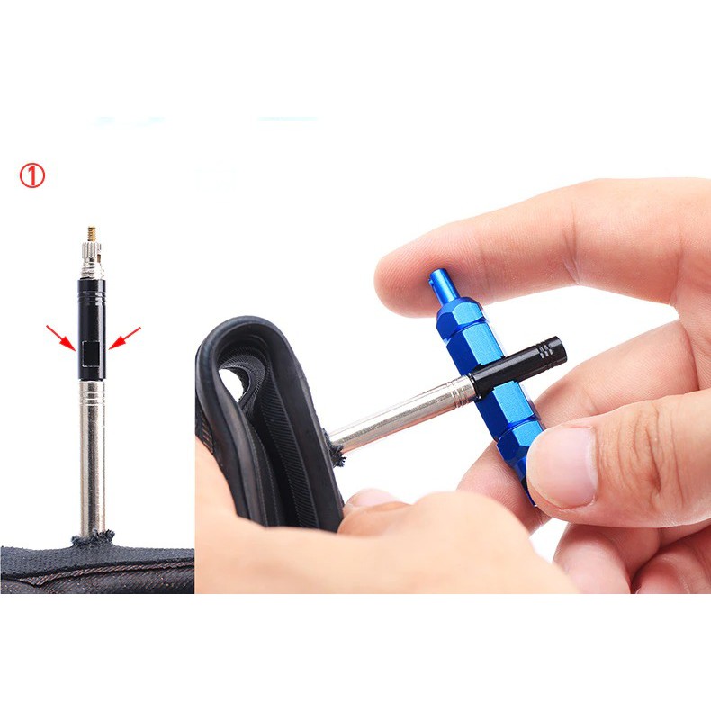 TOOPRE 3 in 1 เครื่องมือขัน ใส่/ถอด วาล์วลมจักรยาน ทั้งแบบ Schrader and Presta Valve ,Tubeless and Tubed Tires (สีดำ)