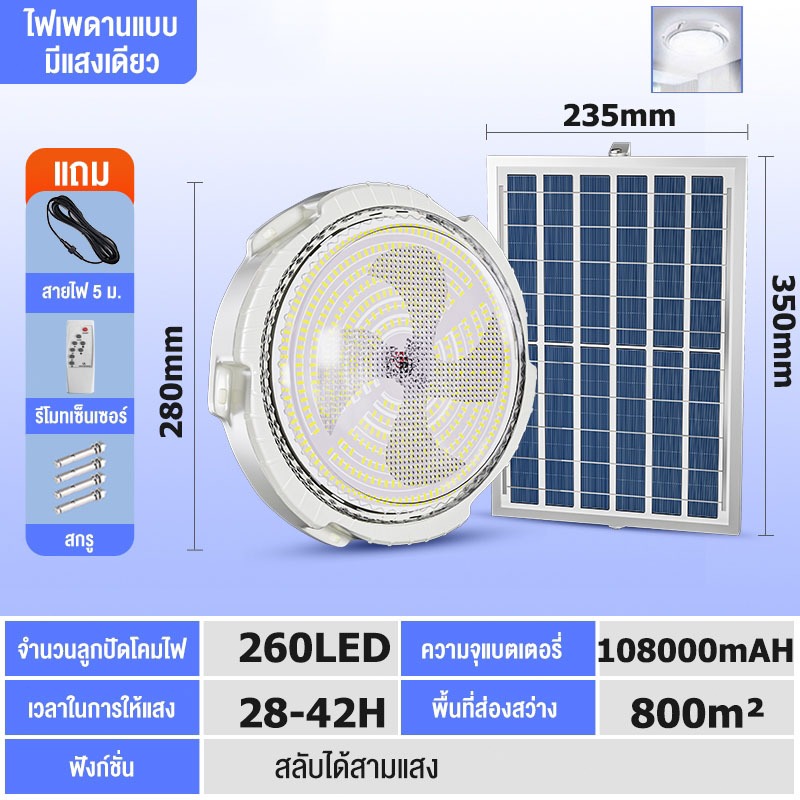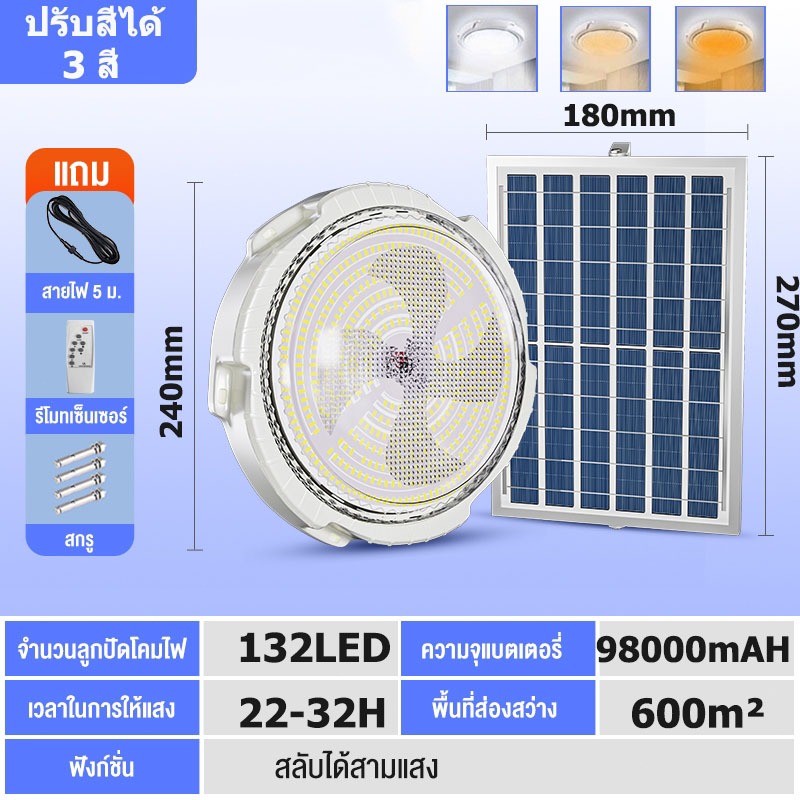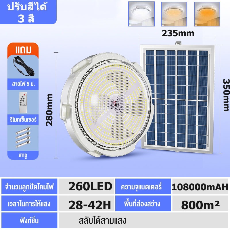 COD【รับประกัน30ปี】⚡ไฟโซล่าเซลล์ 30000W🔥ซื้อ1แถม1ฟรี🔥โซล่าเซลล์ โคมไฟเพดาน 0 ค่าไฟตลอดทั้งปี⚡Solar Light แสงวอร์ม/ไฟสีขาว