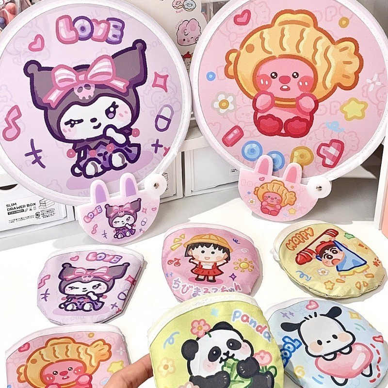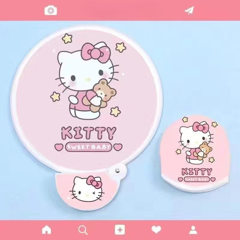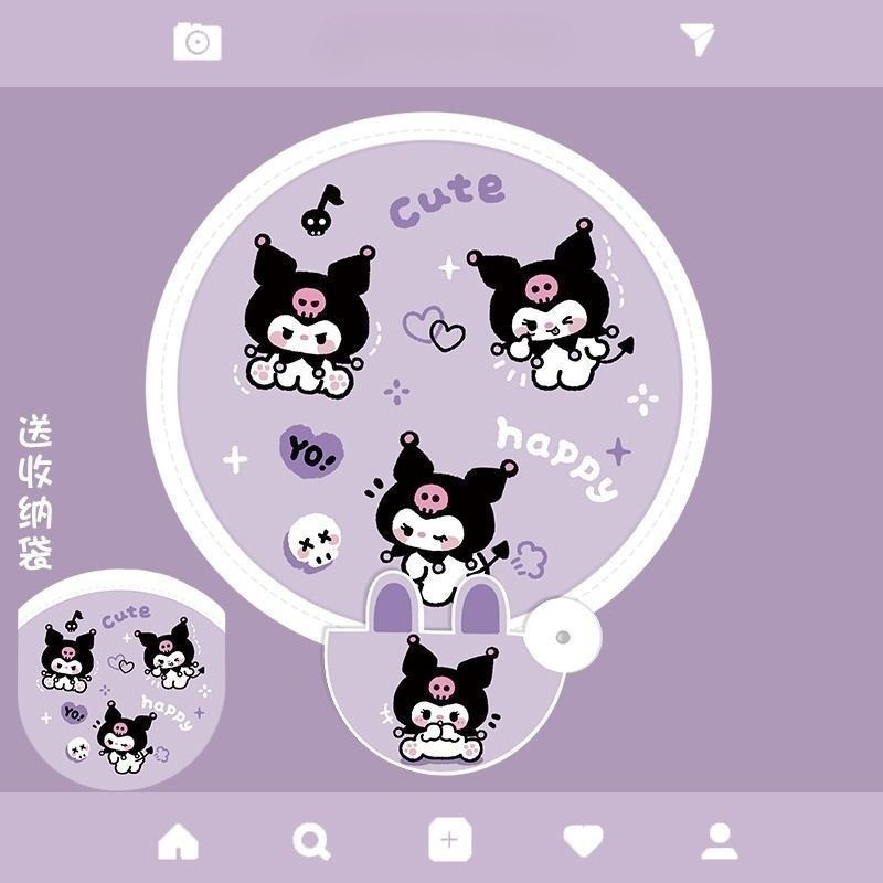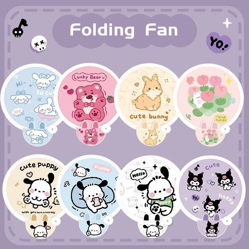 น่ารัก คุโรมิ การ์ตูนพับพัดลมแบบพกพาขนาดเล็กพัดลมฤดูร้อนสดชื่นกลางแจ้งมินิรอบพัดลม