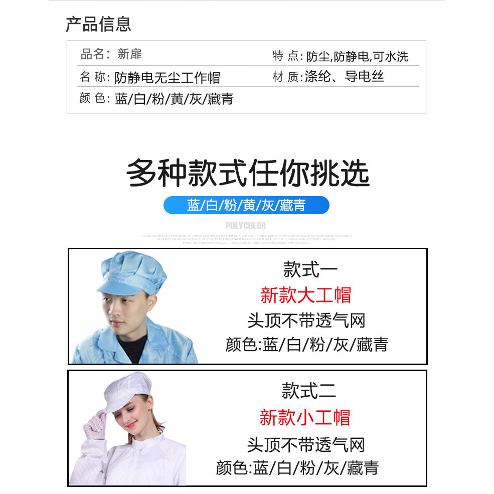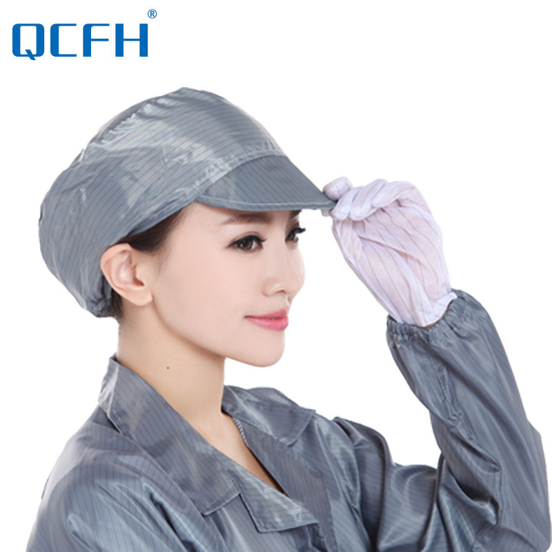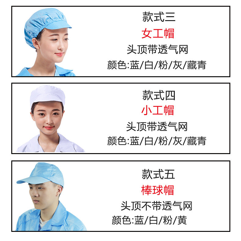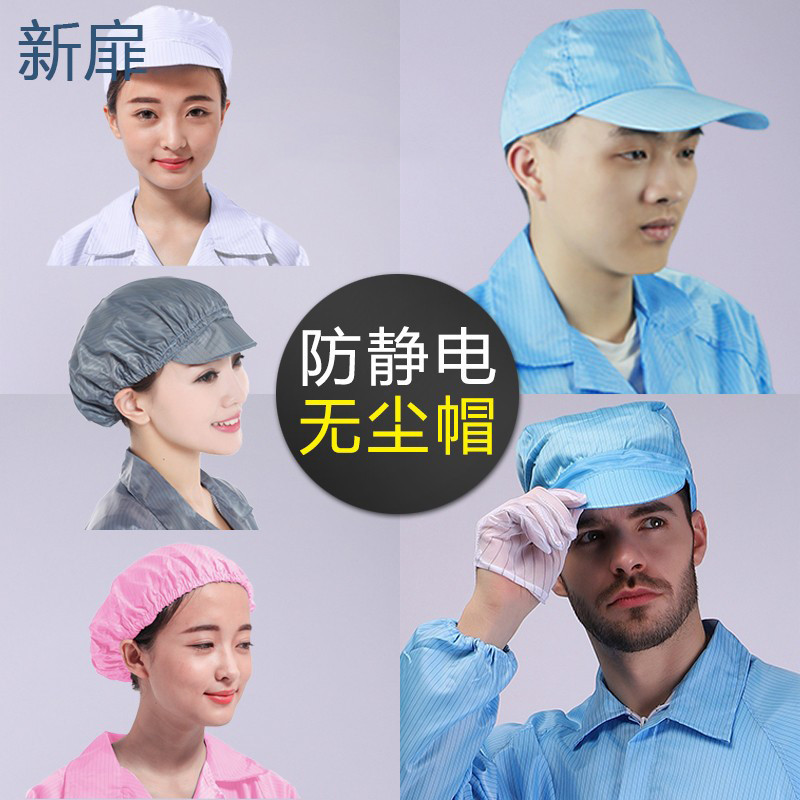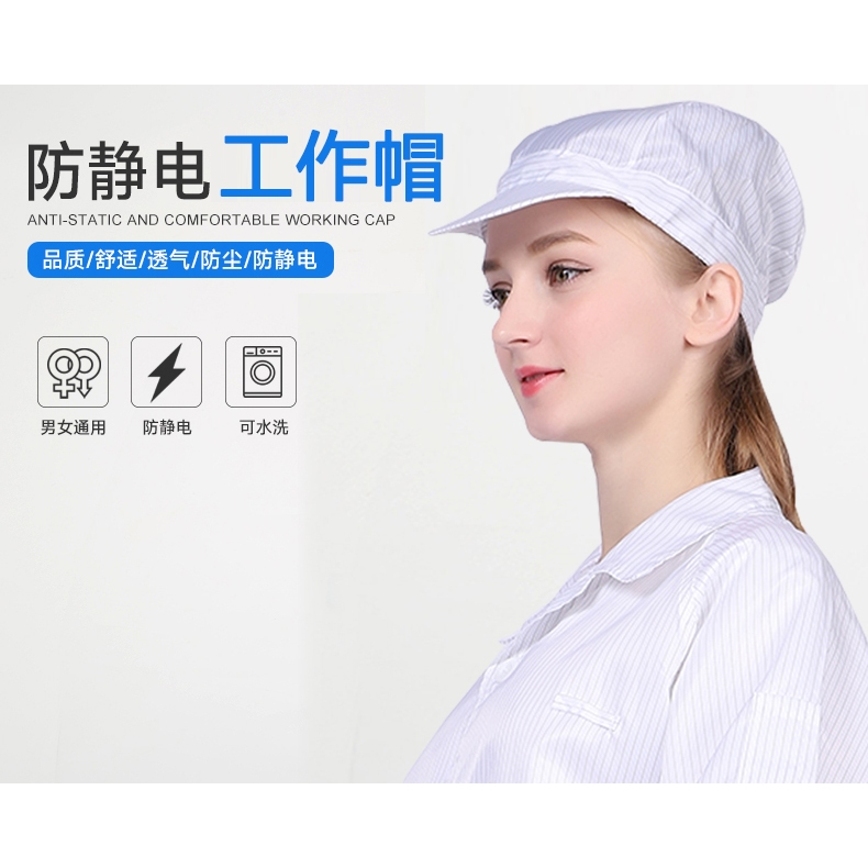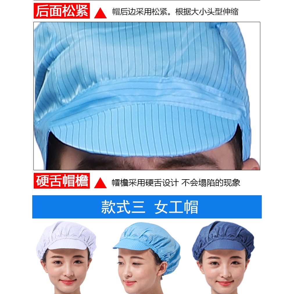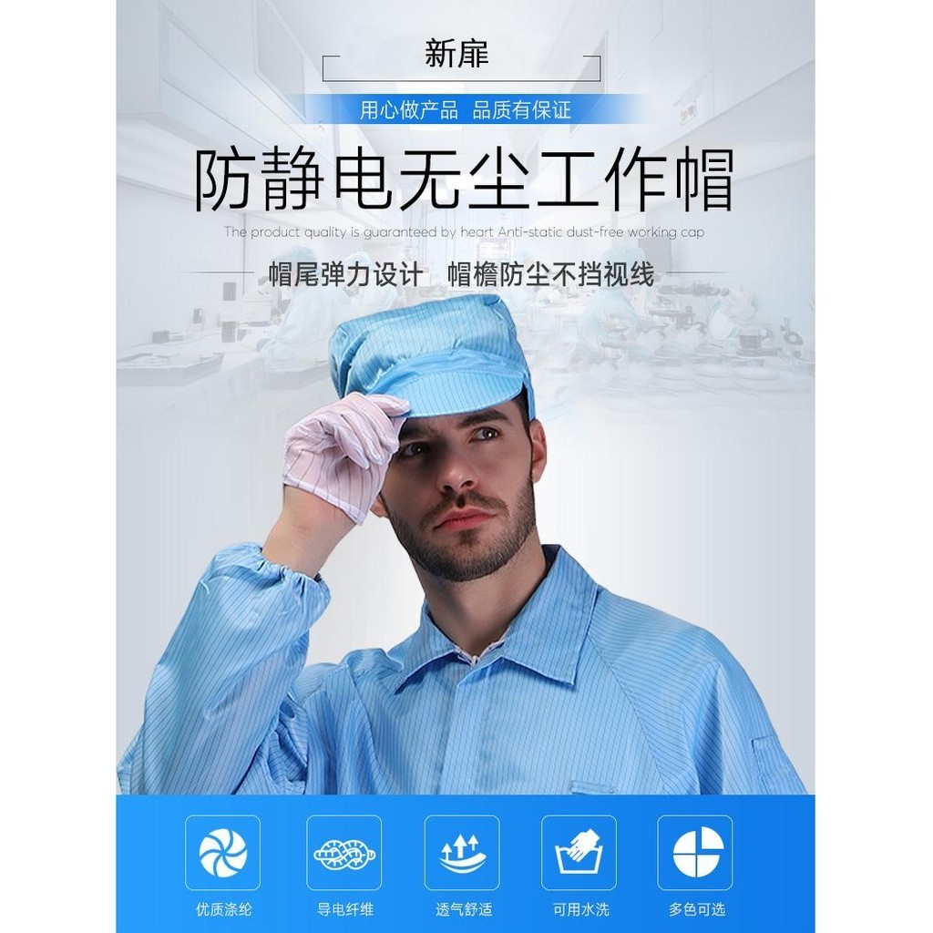 หมวกป้องกันไฟฟ้าสถิตย์หมวกทํางานผู้ชายผู้หญิงหมวกเบสบอลป้องกันฝุ่นโรงงานอาหารอุตสาหกรรมหมวกแหลมเวิร์กช็อปปลอดฝุ่น