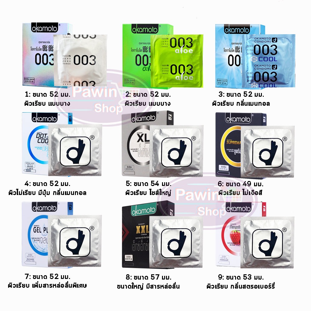 [แบ่งขาย 1ชิ้น] ถุงยางอนามัย Okamoto ของแท้ made in japan รวมทุกรุ่น โอกาโมโต ขนาด 49-54 มม.