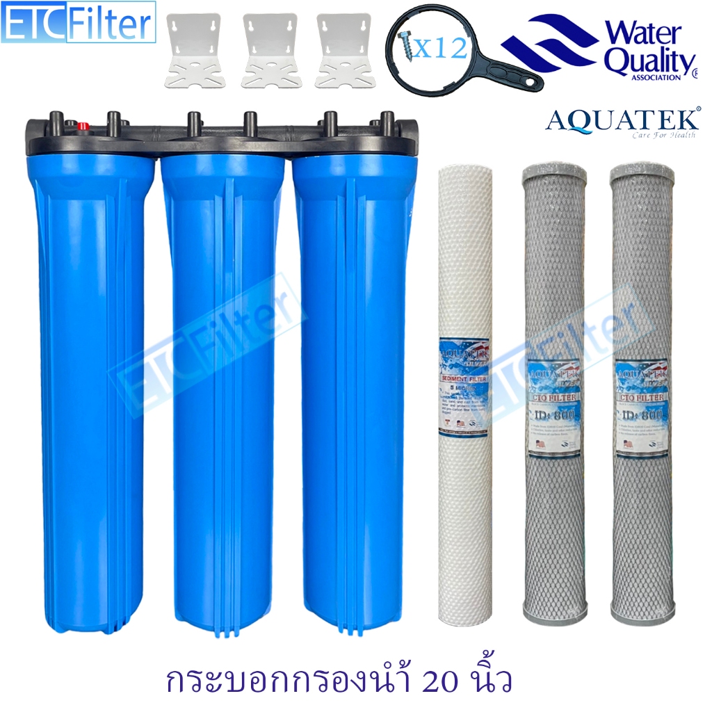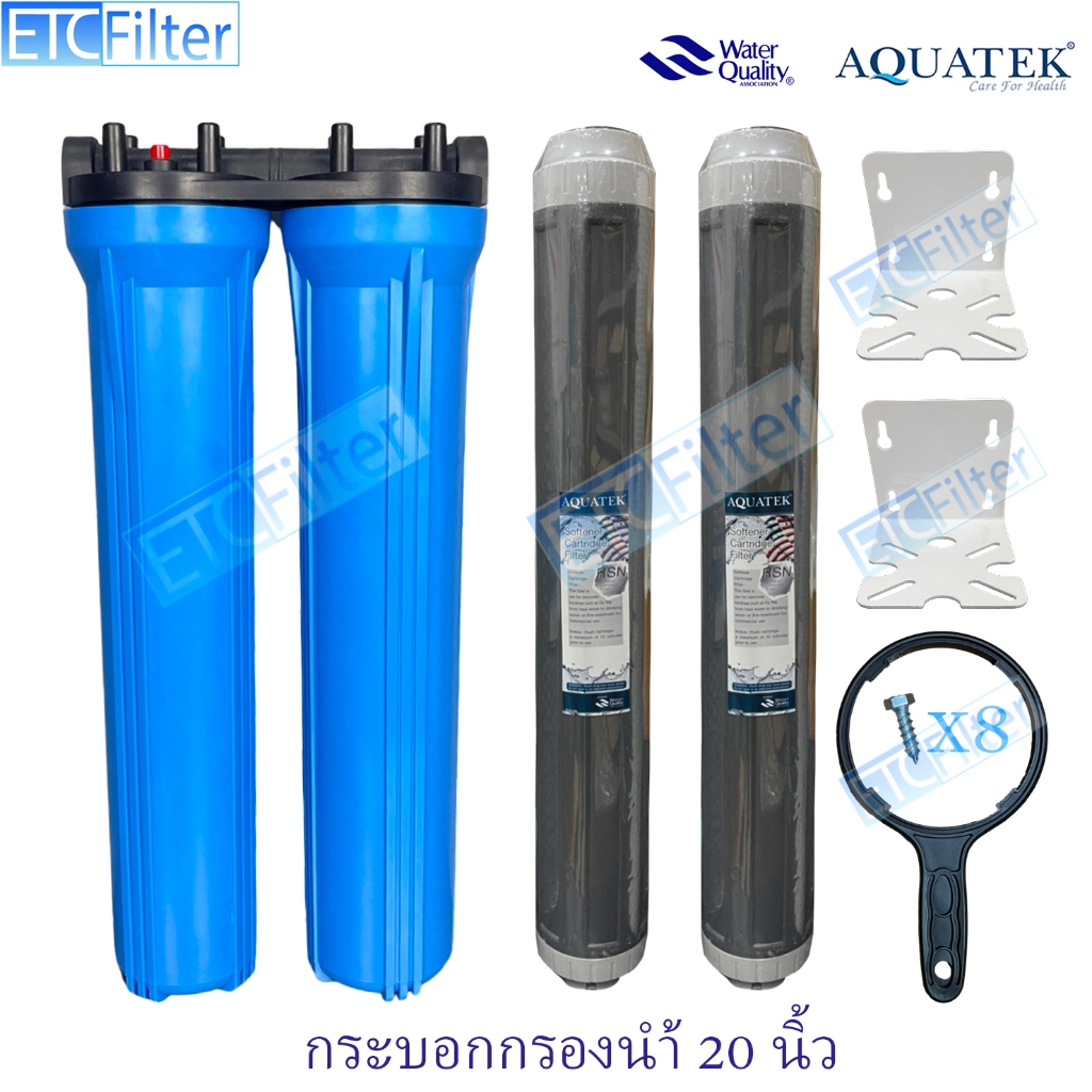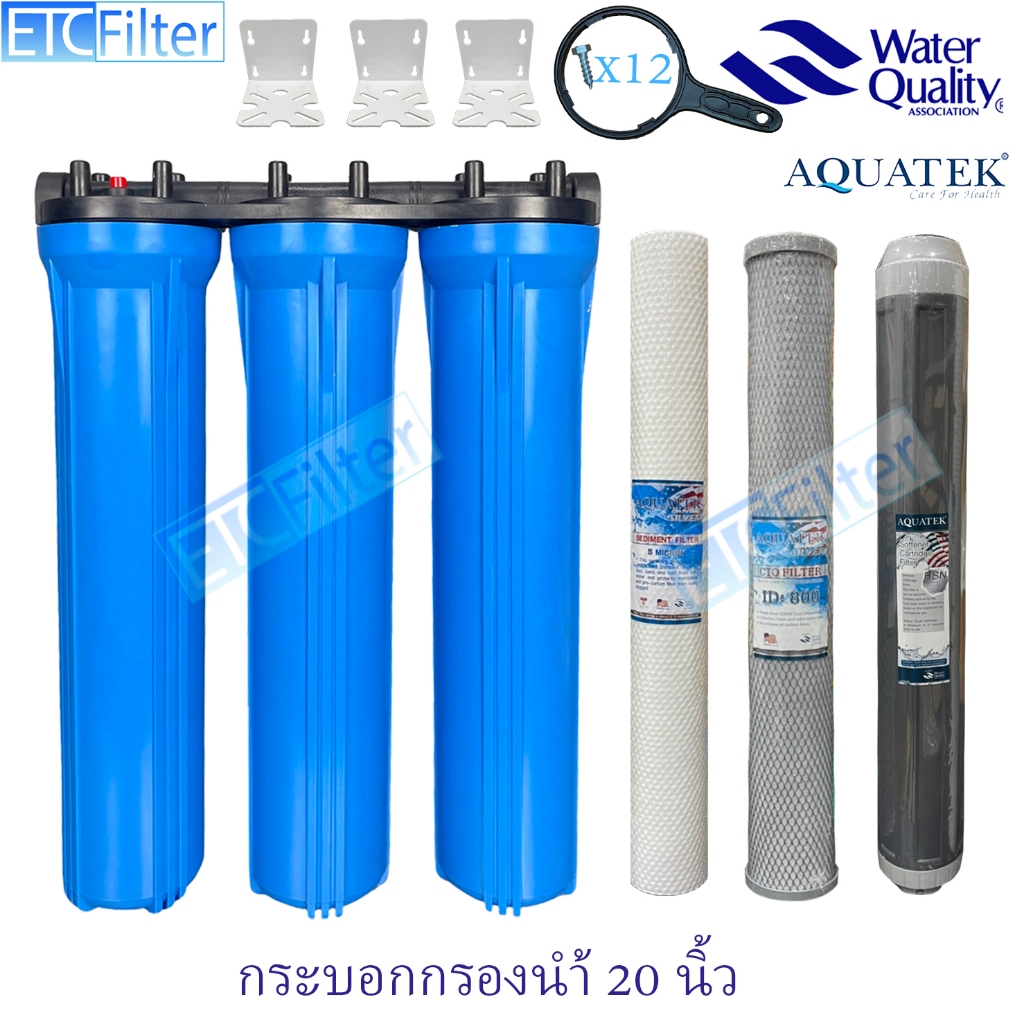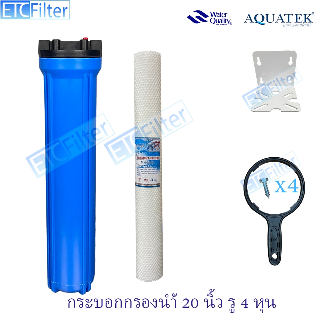 กระบอกกรองนำ้ใช้ ขนาด 20 นิ้ว 1-3 ขั้นตอน และ ไส้กรอง AQUATEK ขนาดรู 4หุน