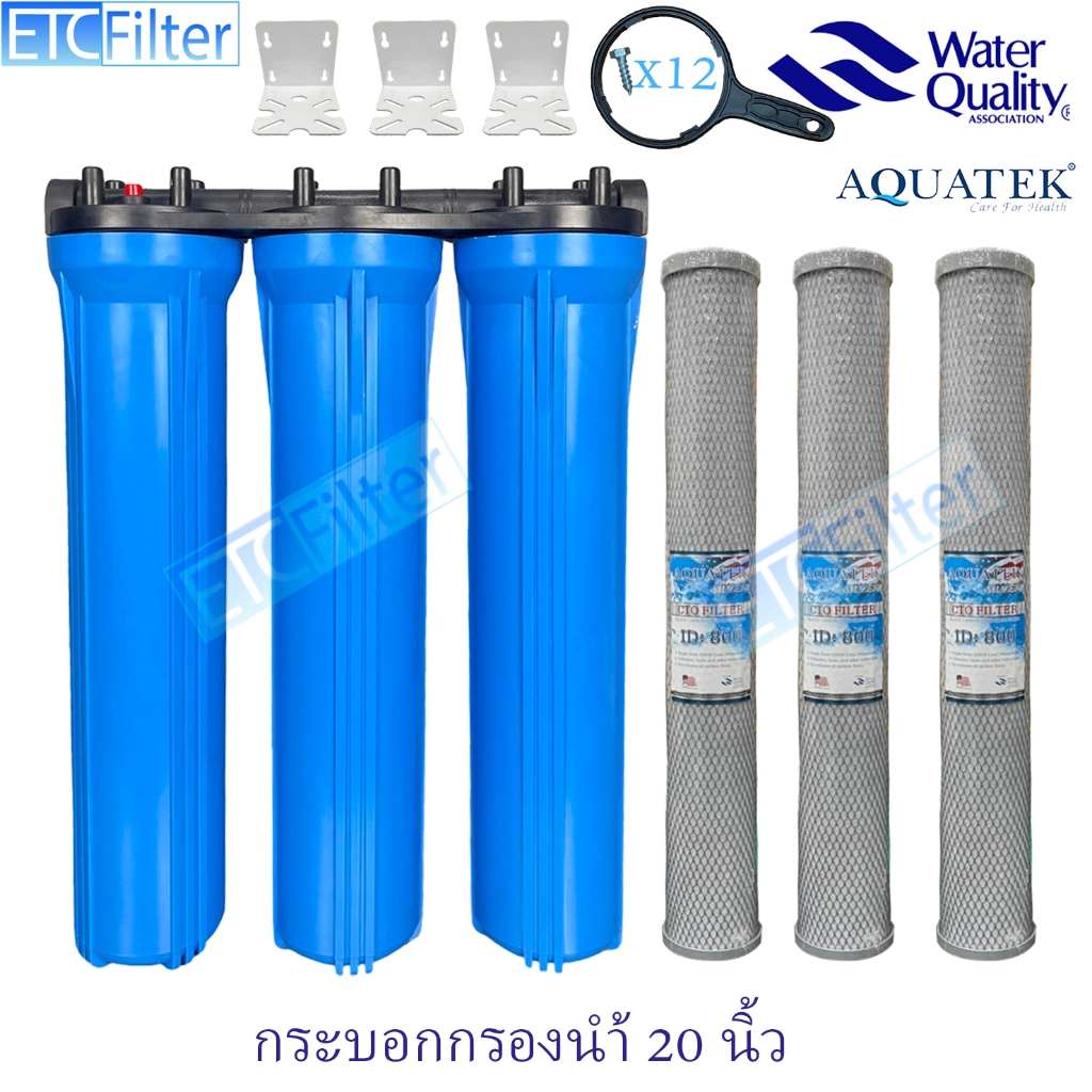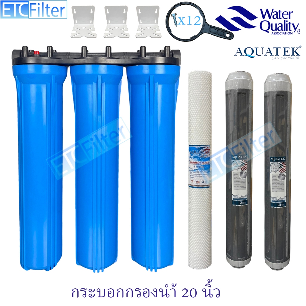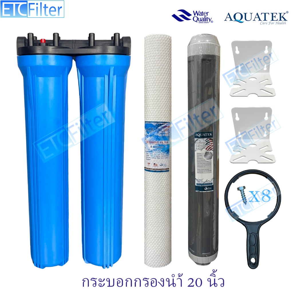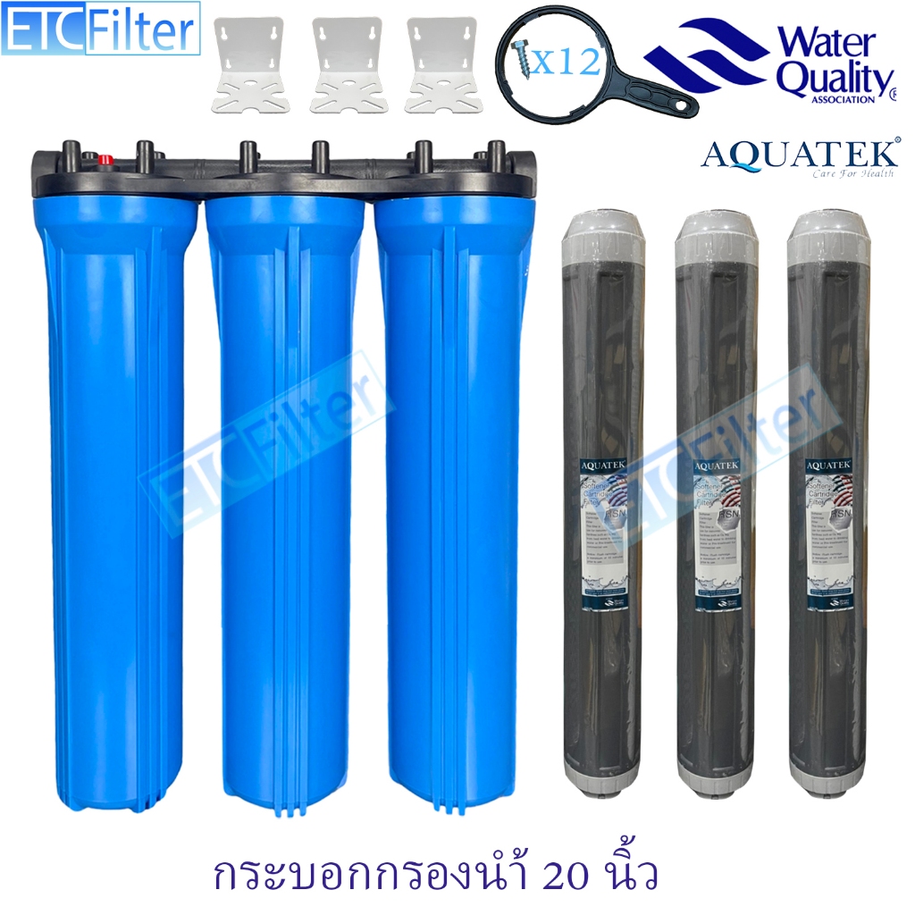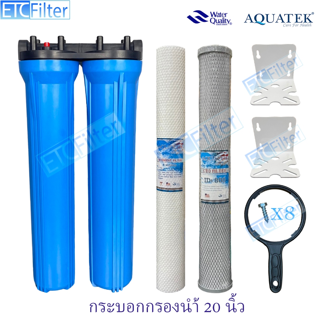 กระบอกกรองนำ้ใช้ ขนาด 20 นิ้ว 1-3 ขั้นตอน และ ไส้กรอง AQUATEK ขนาดรู 4หุน