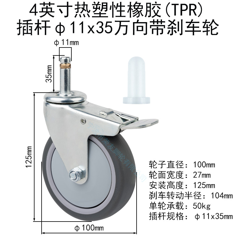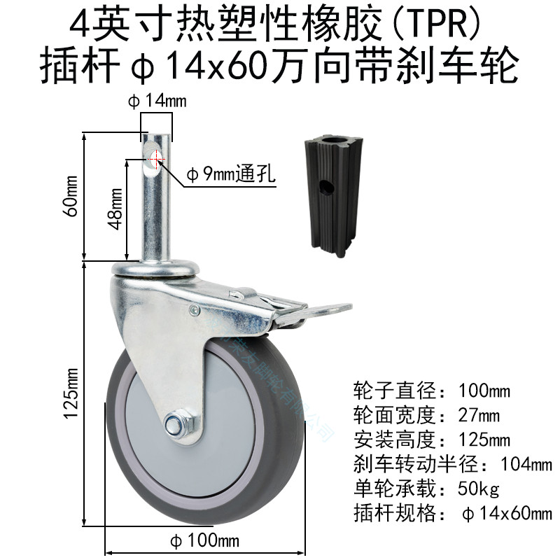 10 ซม.13 ซม.17 ซม.รับประทานอาหารรถเข็นล้อเลื่อนขยาย Rod ประเภท Universal ล้อ Circlip เบรคล้อ Mute ล้อเดี่ยว/FGR8