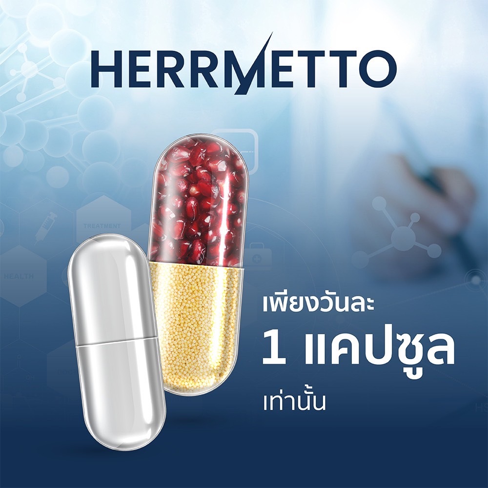 HERRMETTO เฮอร์เมตโต อาหารเสริม ลดผมร่วง เพิ่มผมดกหนา ช่วยให้รากผมแข็งแรง สำหรับผู้ชาย 30 Caps
