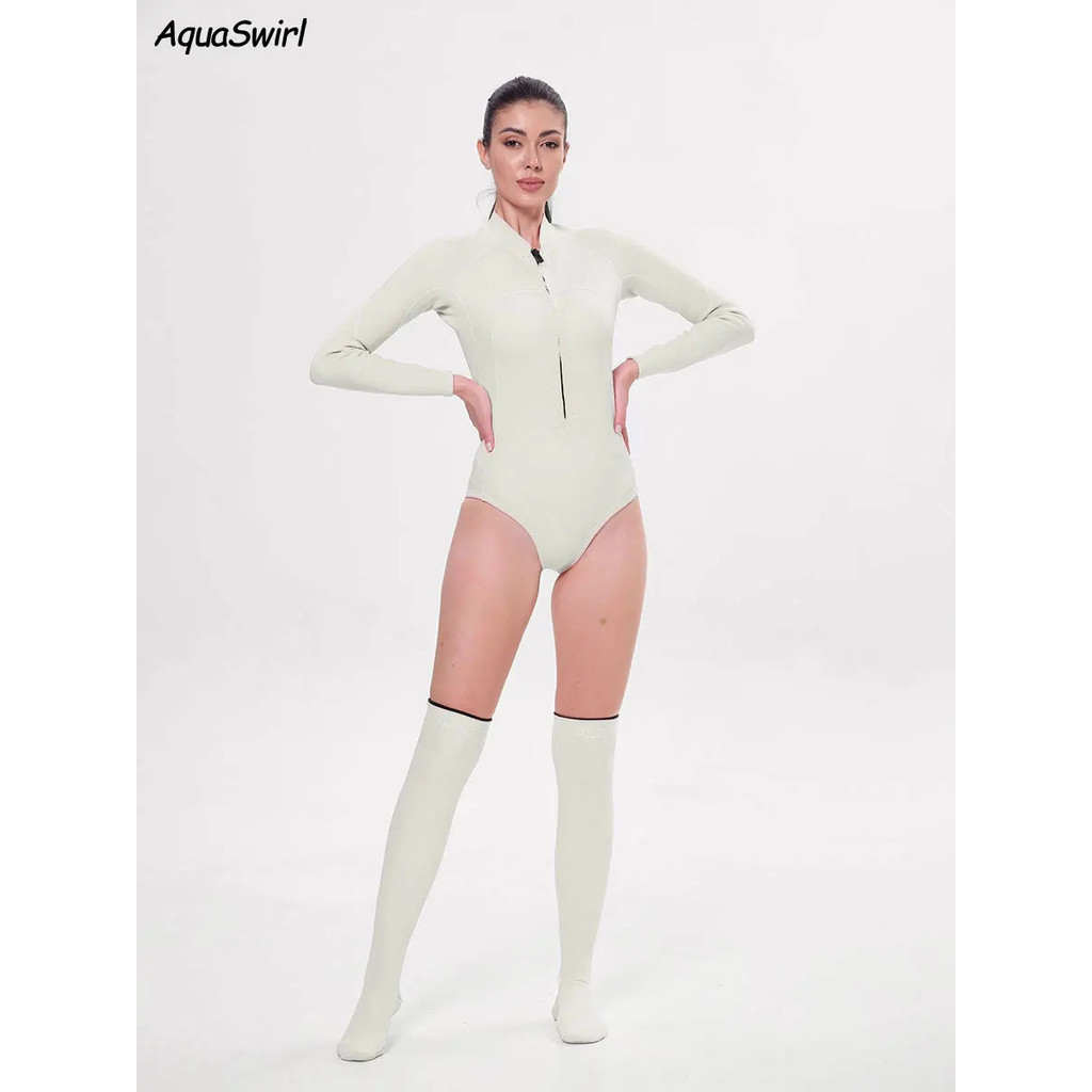 [Legend6] ชุดว่ายน้ำเนโอเพรนแขนยาว สีชมพูกับขาว ออกแบบแยกซีment สำหรับดำน้ำดูปะการังและว่ายน้ำรักษาความอบอุ่น
