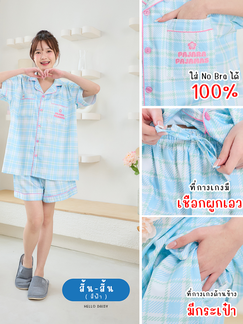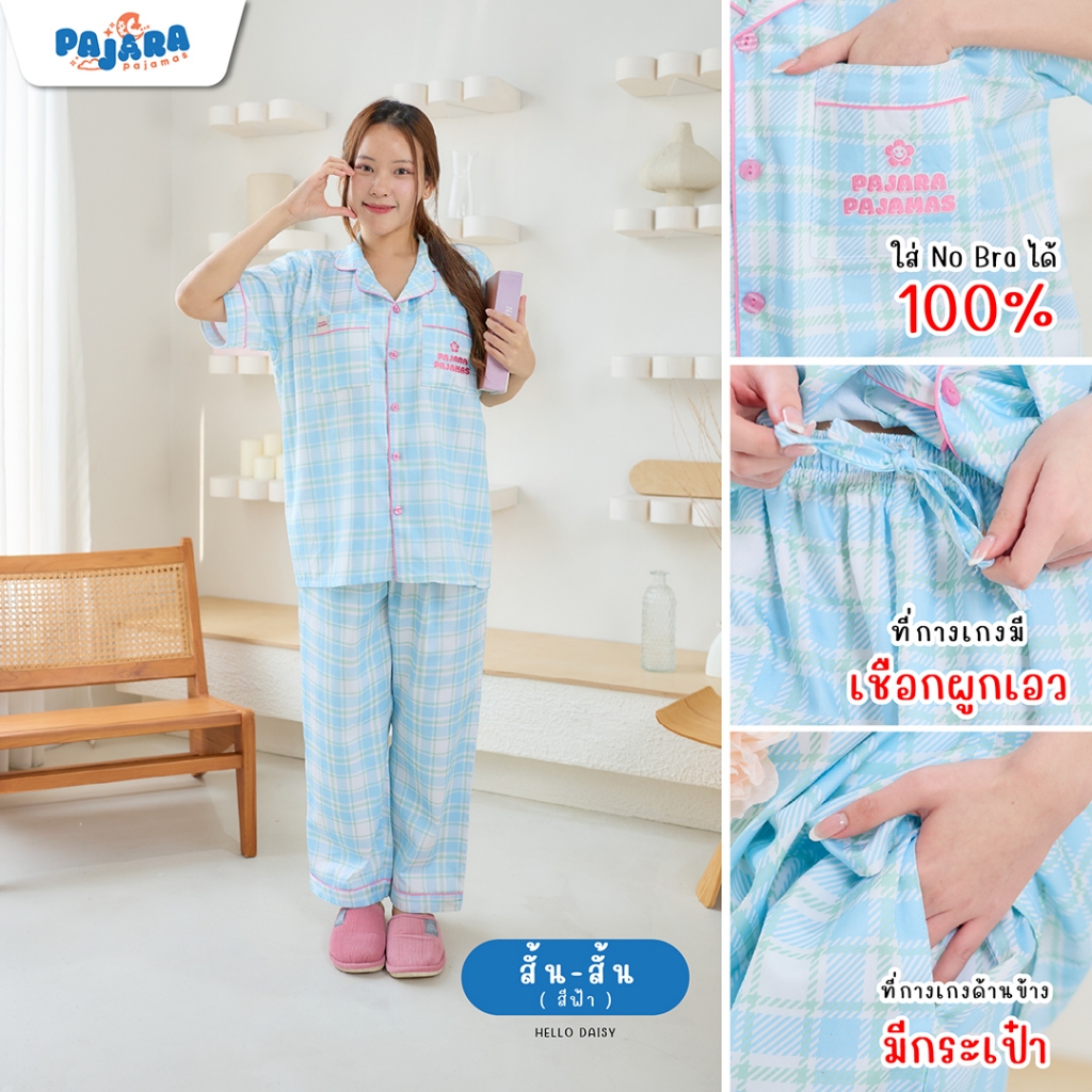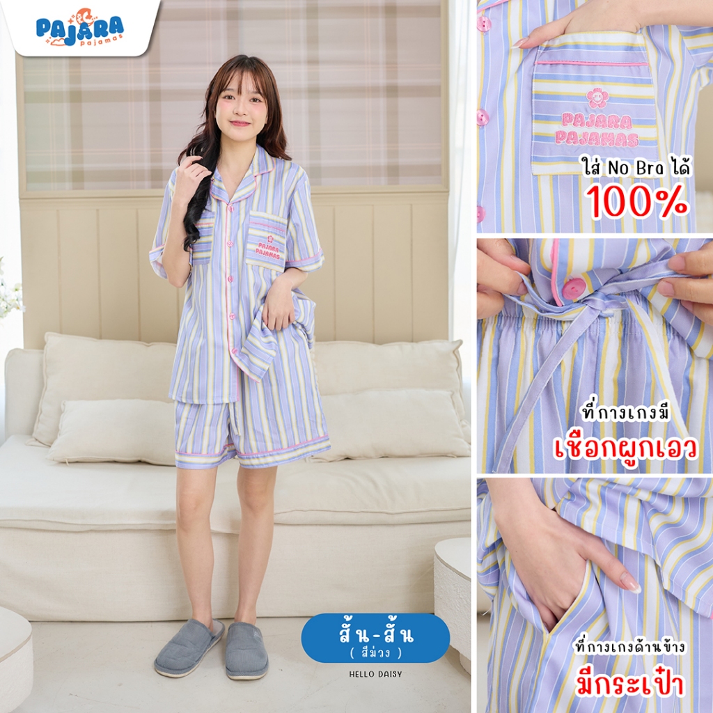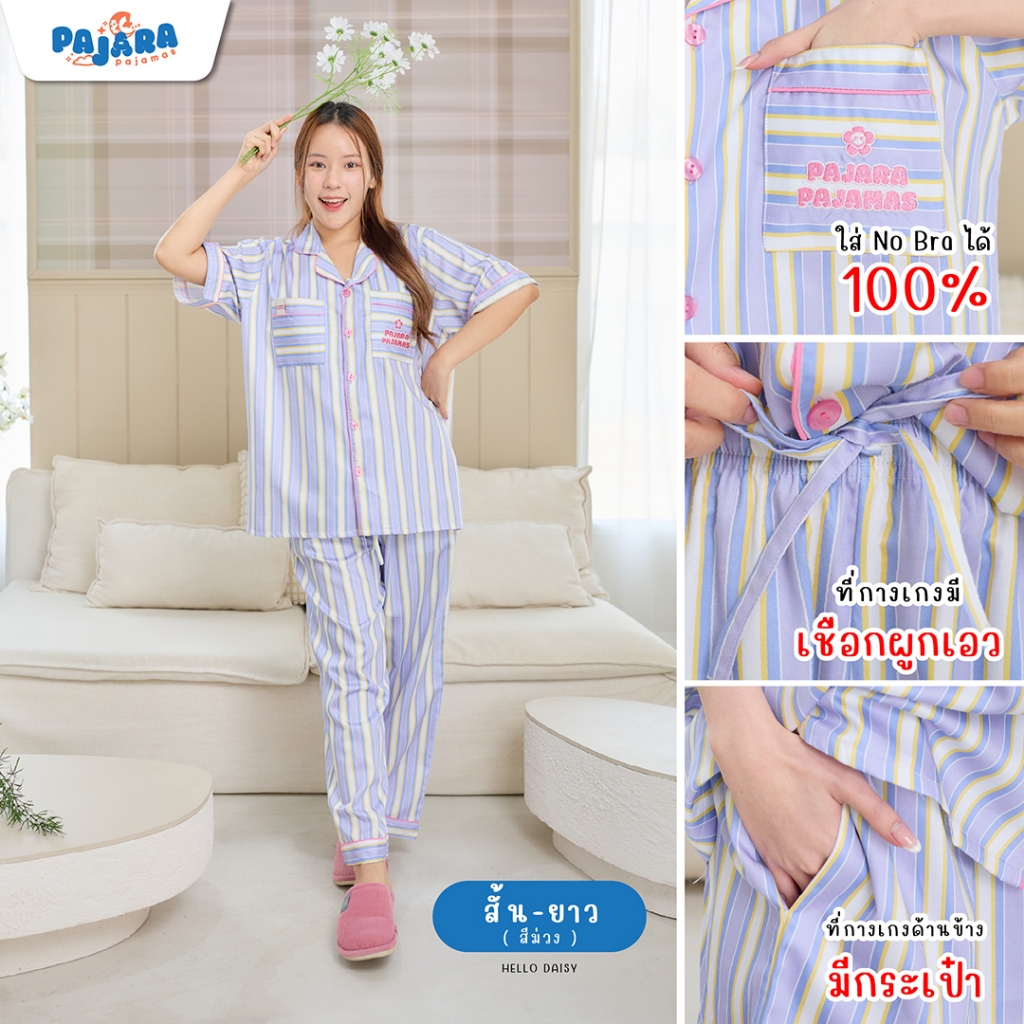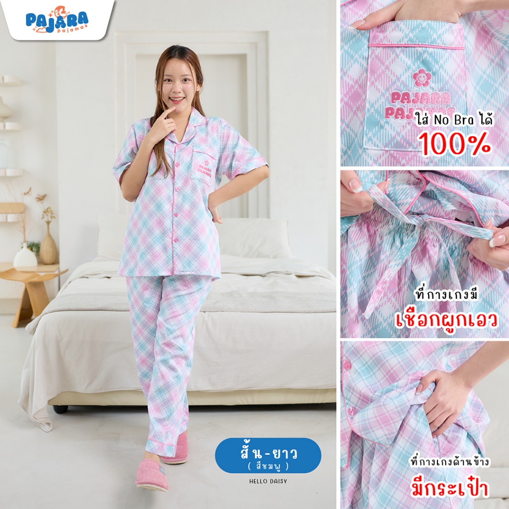 New ชุดนอน Pajara Pajamas (Premium) PJR-SL-0008 Collection Hello Daisy เนื้อผ้า Cotton Satin ลิขสิทธิ์แบรนด์ PAJARA