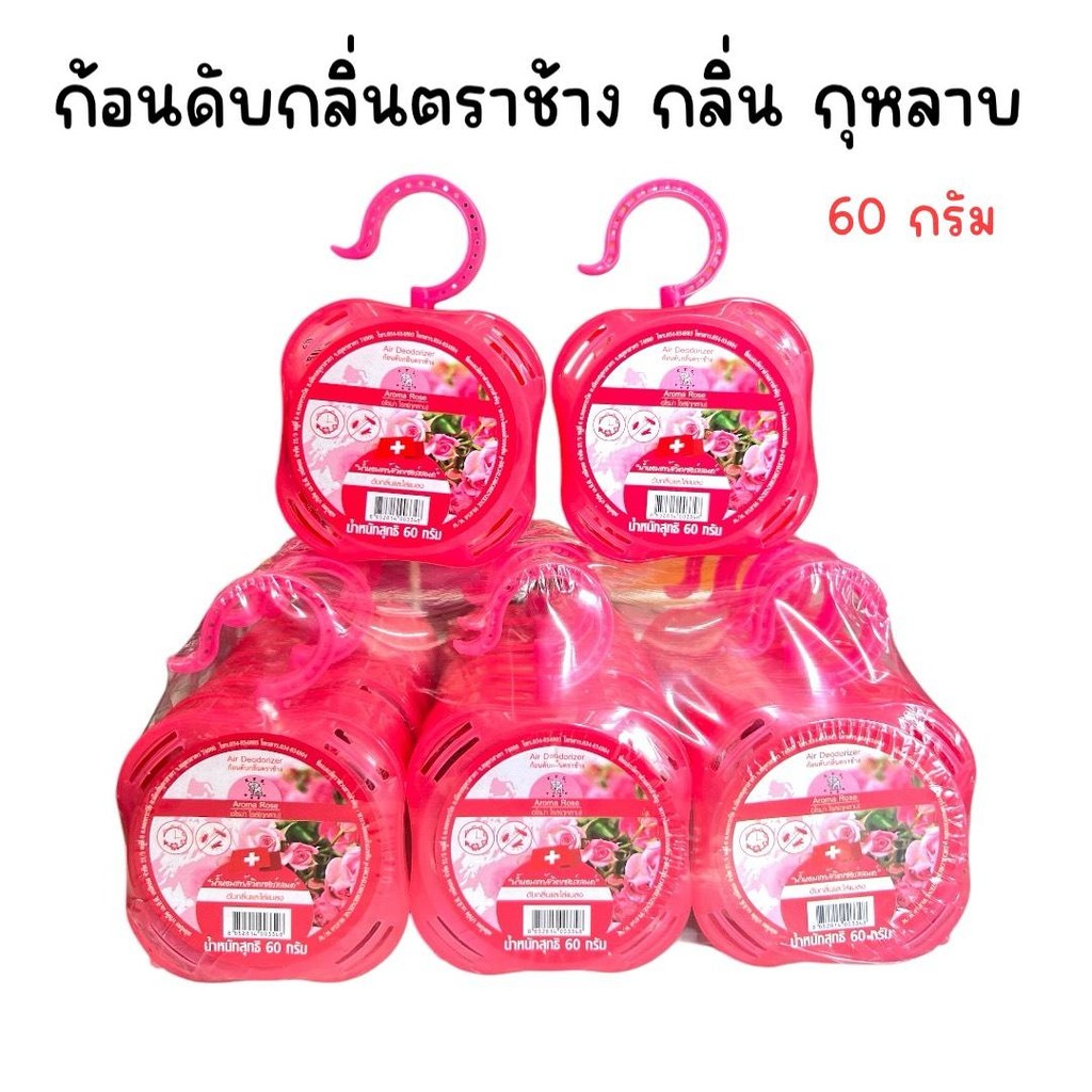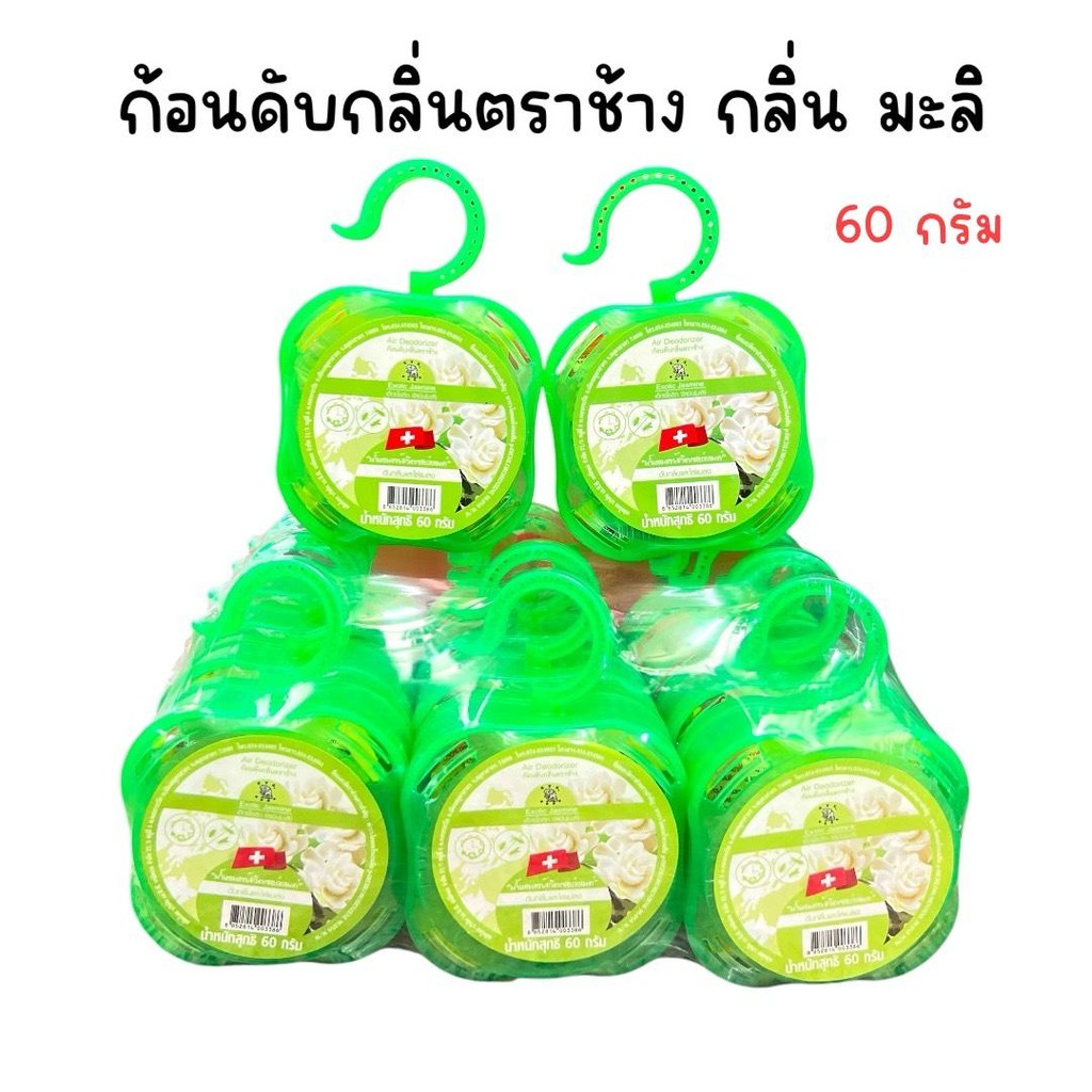 (ยกแพ็ค 12 ชิ้น) ก้อนดับกลิ่น 60 กรัม ตราช้าง พร้อมตลับและที่แขวน