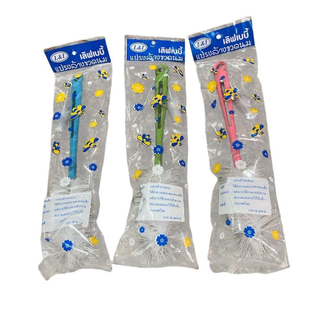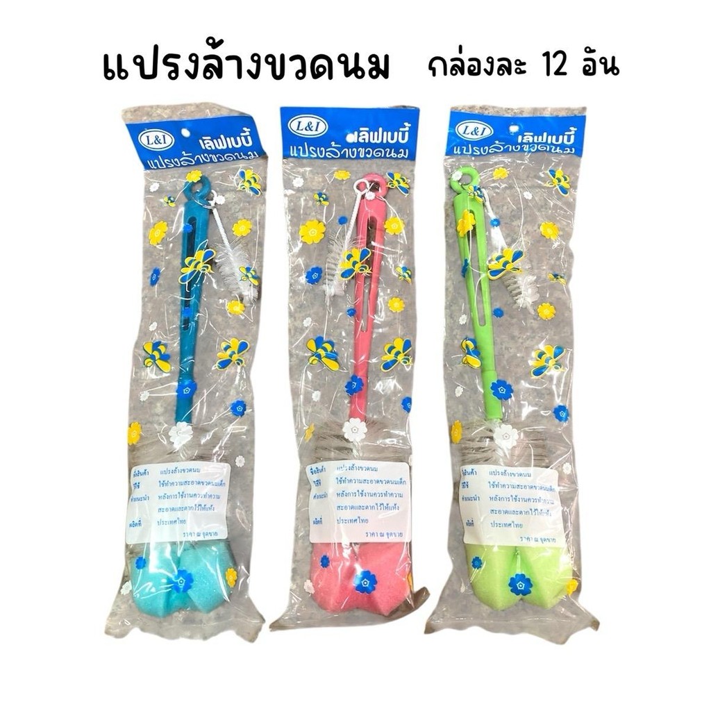 (ยกโหล 12 อัน) แปรงล้างขวดนม L&I หัวแฉก หัวฟองน้ำ คละสี