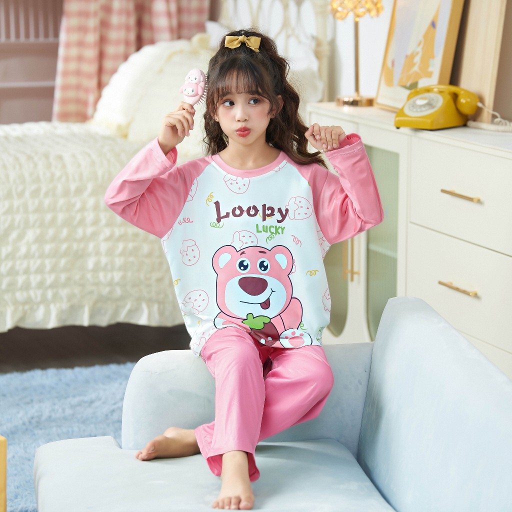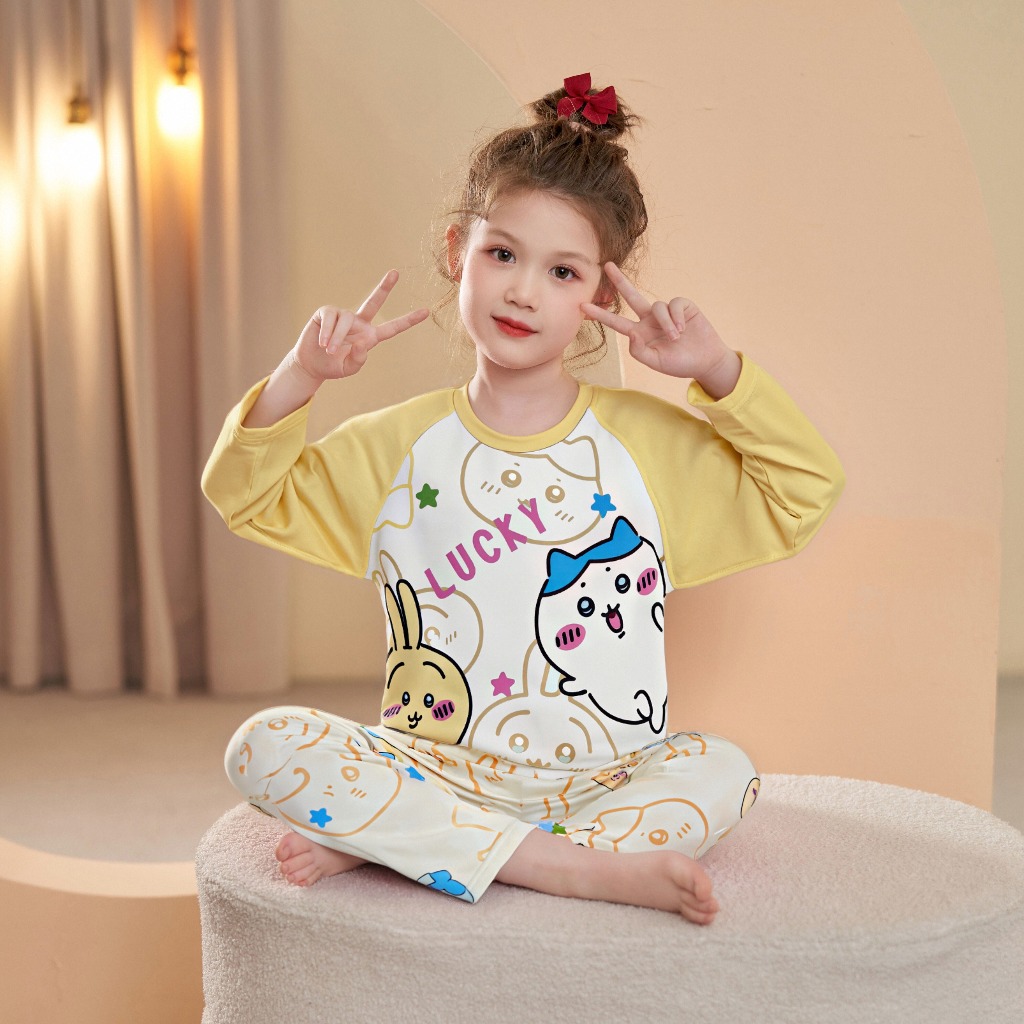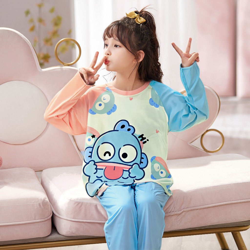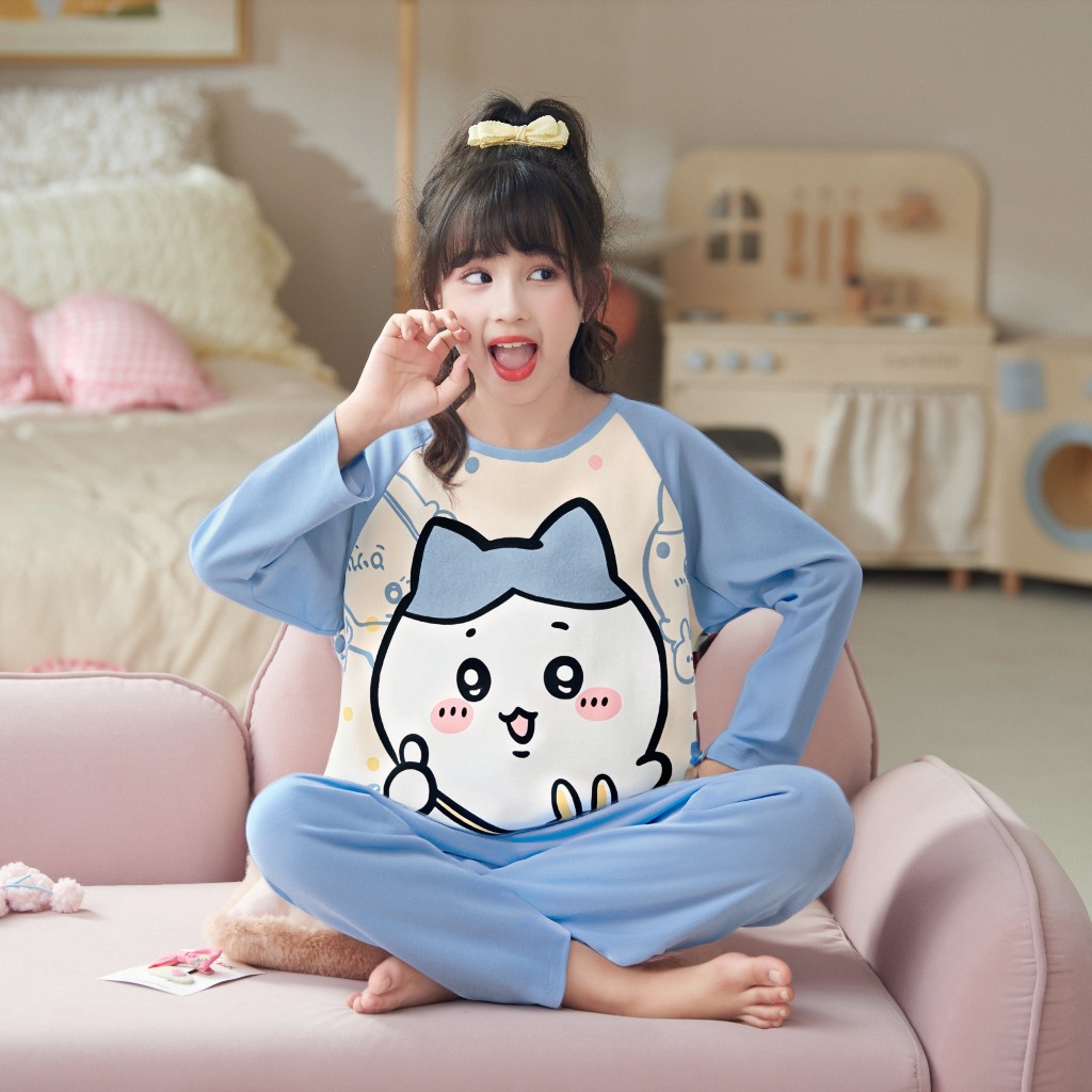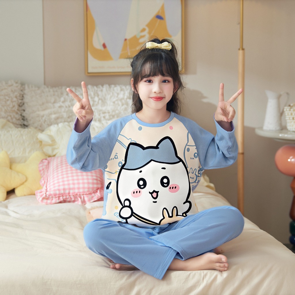 ชุดนอนเด็กผู้หญิงแขนยาวเด็กน่ารักการ์ตูนเด็กโตกลางฤดูใบไม้ร่วงและฤดูหนาวใส่ได้ชุดนอน